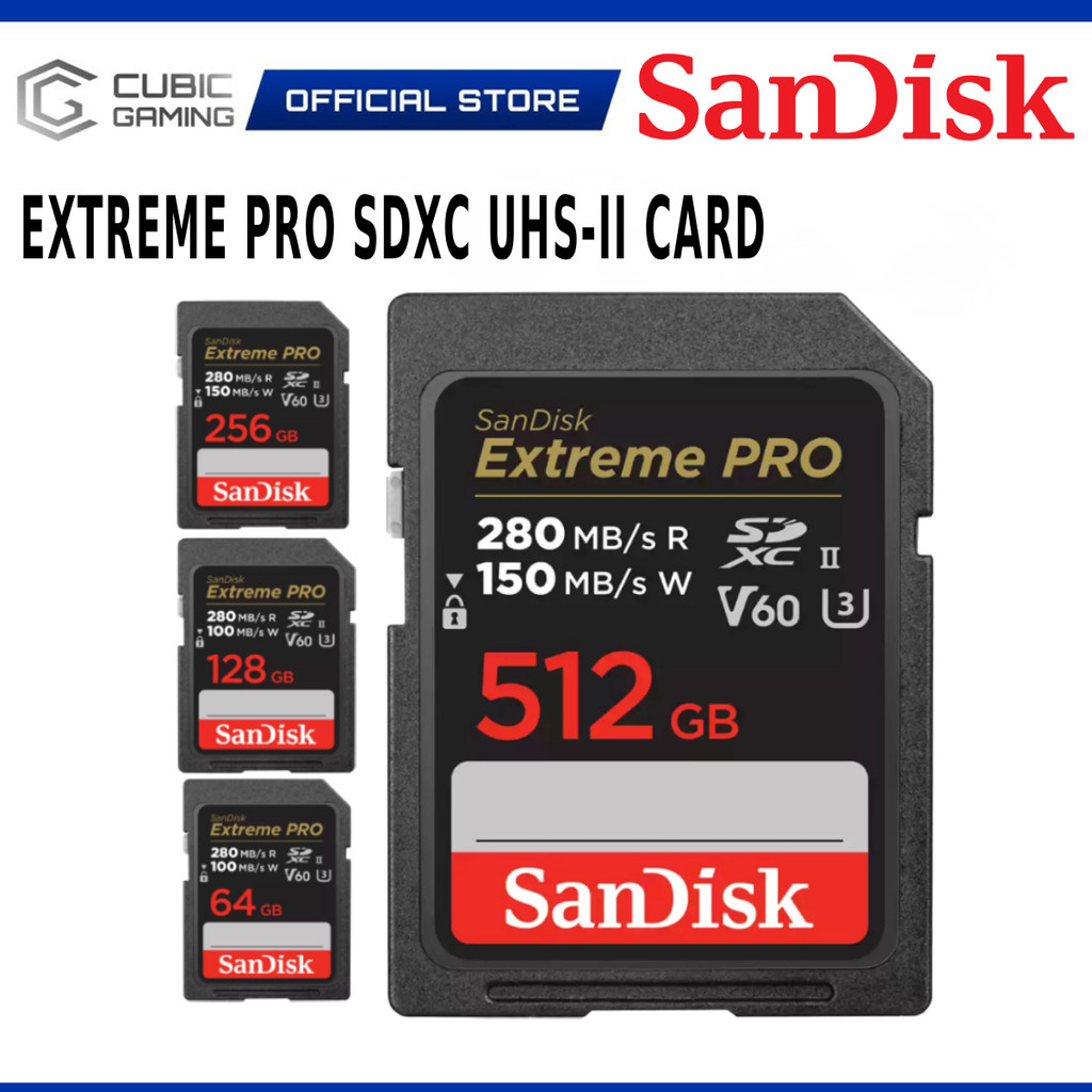 SANDISK EXTREME PRO SDXC UHS-II SD CARD 64GB / 128GB / 256GB / 512GB WITH UP TO 280MB/S SUPER RELIABLE 6K & 8K VIDEO