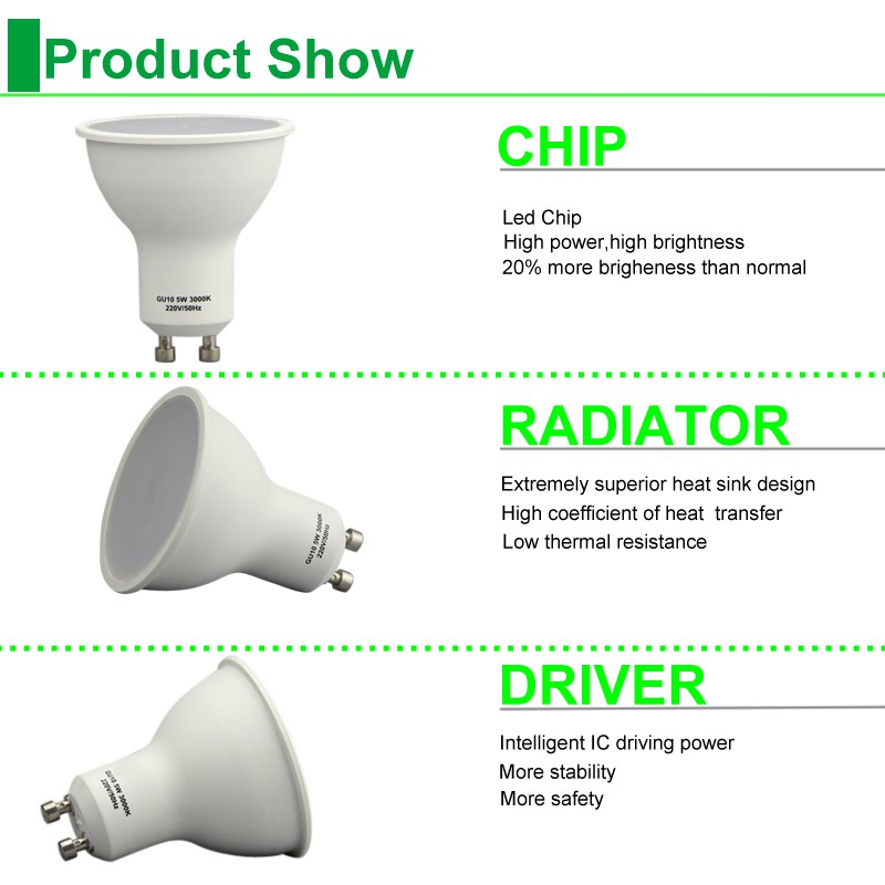 GU10 Led Bulb 5W 7W 3W Spotlight 2835SMD Chip Beam Angle 120 Degree AC220V