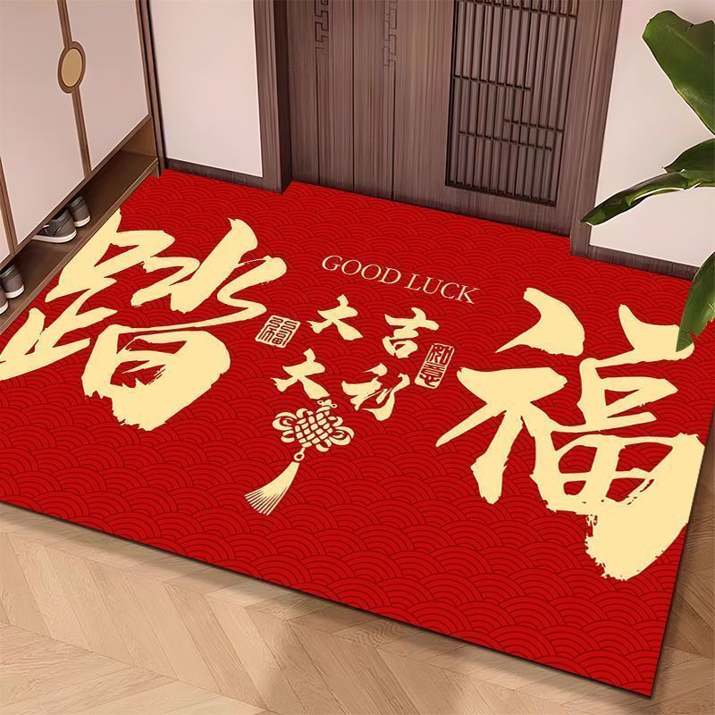 现货 现发2026红色喜庆新年地毯入户地垫可裁剪门口地垫玄关地垫高档防滑垫
