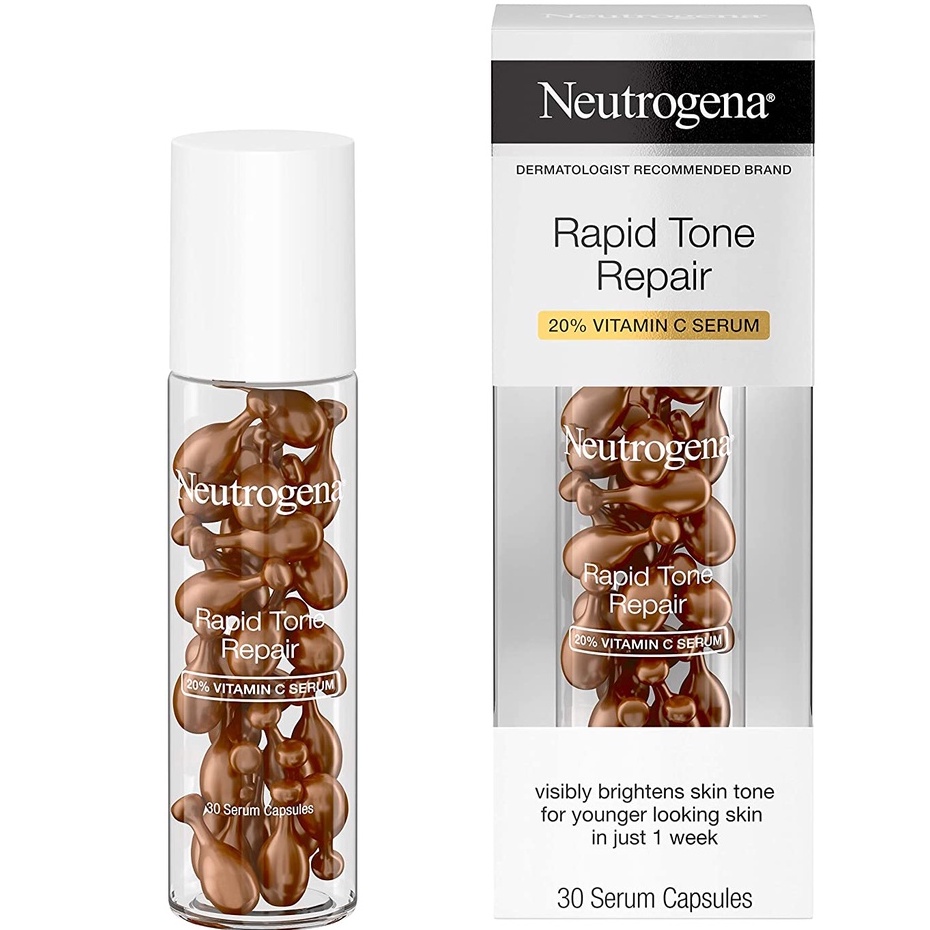 Neutrogena Rapid Tone Repair 20% Vitamin C Brightening 30 Serum Capsules, Antioxidant Face Serum to Brighten Look of Dark Spots & Even Skin Tone, Oil-Free