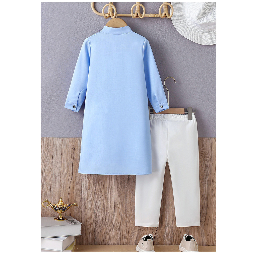 New Muslim Boys' Embroidered Robe Set -Pure Cotton Top 3-8 Years
