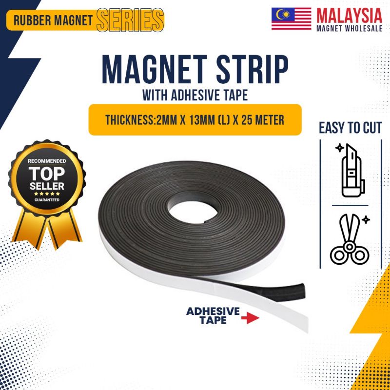 STRONG MAGNET STRIP WITH ADHESIVE TAPE - Size : 2MM (T) x 13MM (W) x 25 Meter (L)