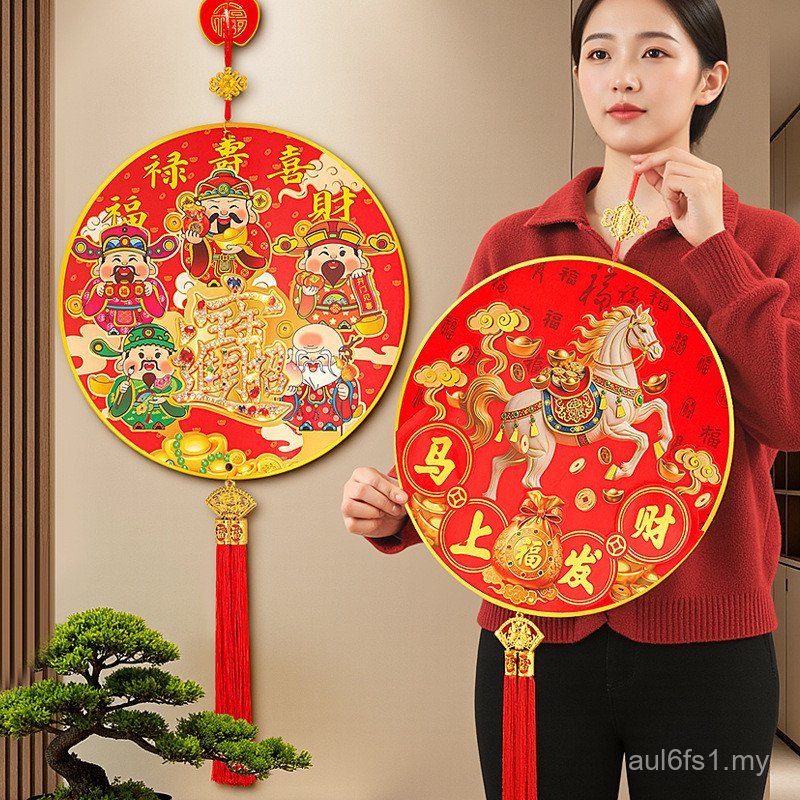 2026 Year of the Horse New Year Spring Festival Blessing Character Ornaments Christmas Festive Electric Rotating God of Wealth Pendant Moving Head Decoration Year Flavor EABM