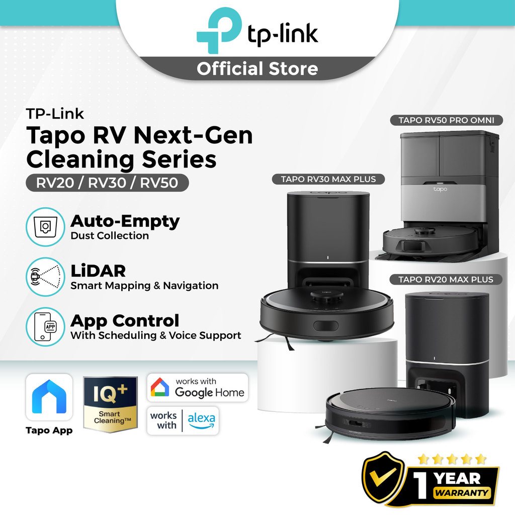 TP-Link Tapo RV50 Pro Omni | RV30 Max Plus | RV20 Max Plus Robot Vacuum Mop Auto Empty Dock Mapping App Control