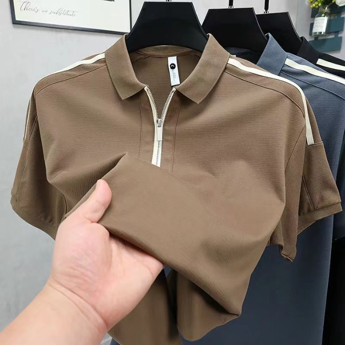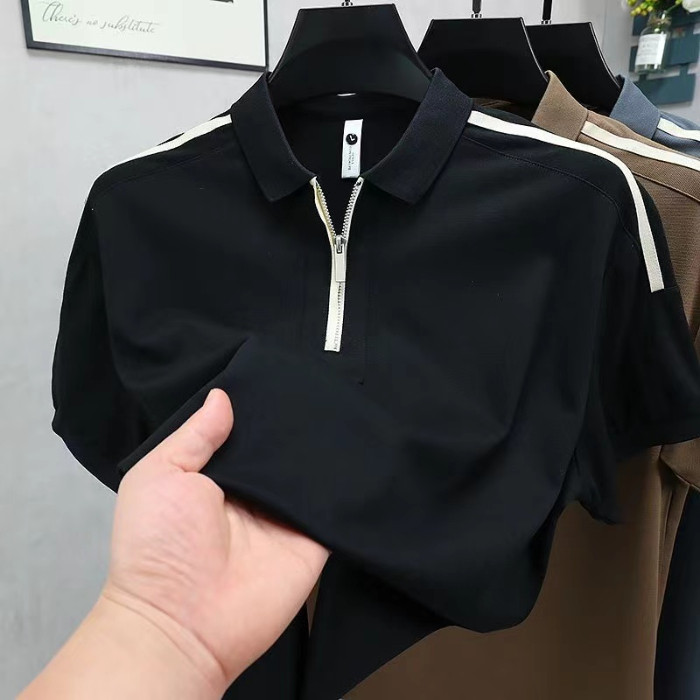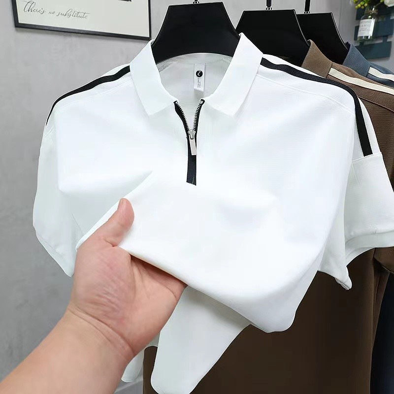 Bottoming T-Shirt Men's Lapel Short-Sleeved Half-Sleeved Loose Middle-Aged Youth Half @-