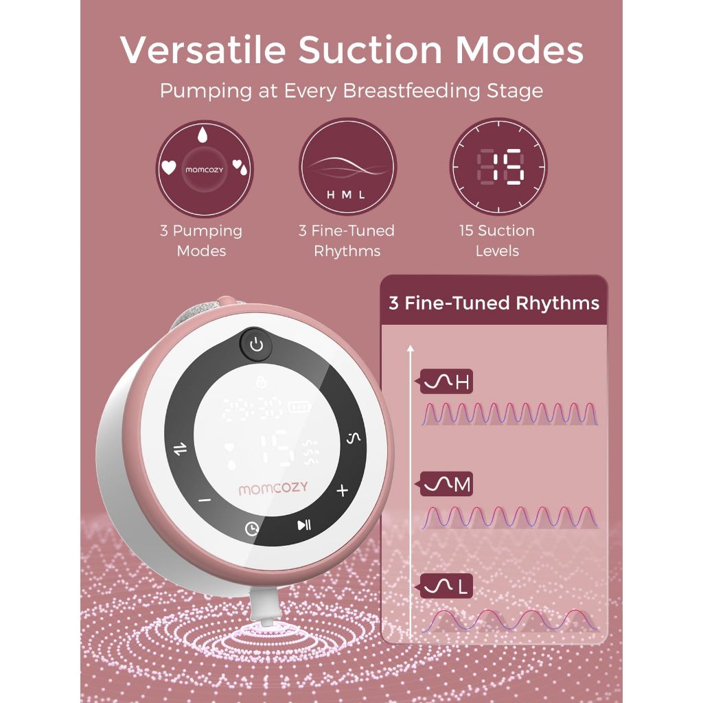 Momcozy Breast Pump V1 Pro Hospital-Grade, Hands-Free & Portable Wearable Pump, Upgraded Electric Pump with 3 Fine-Tuned Rhythms|15 Levels, Come with Leak-Proof DoubleFit Flange