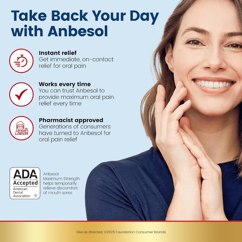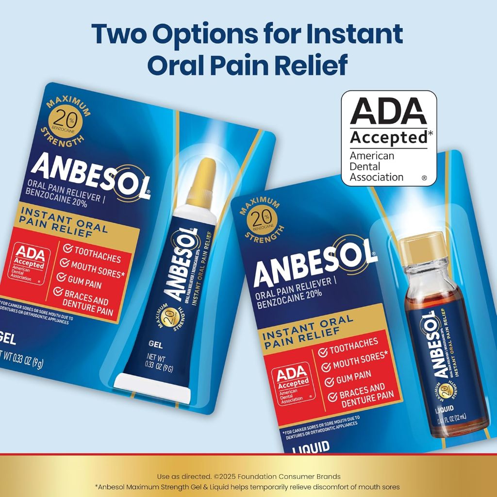 Anbesol Gel Maximum Strength - Instant Oral Pain Relief for Toothaches, Canker Sores, Sore Gums, Denture Pain 9g