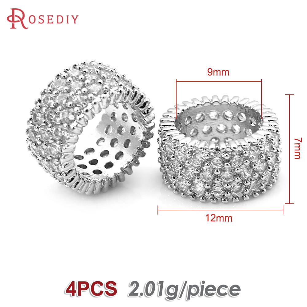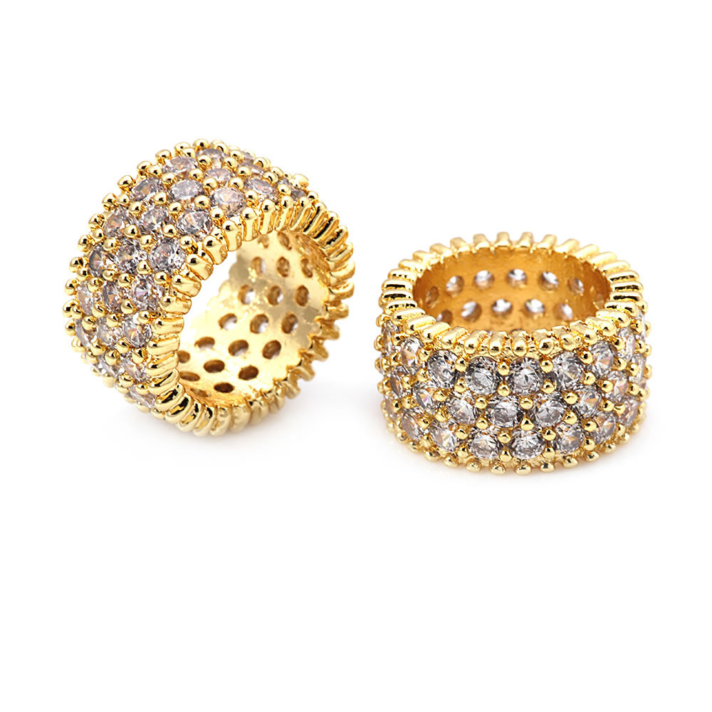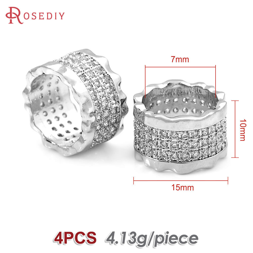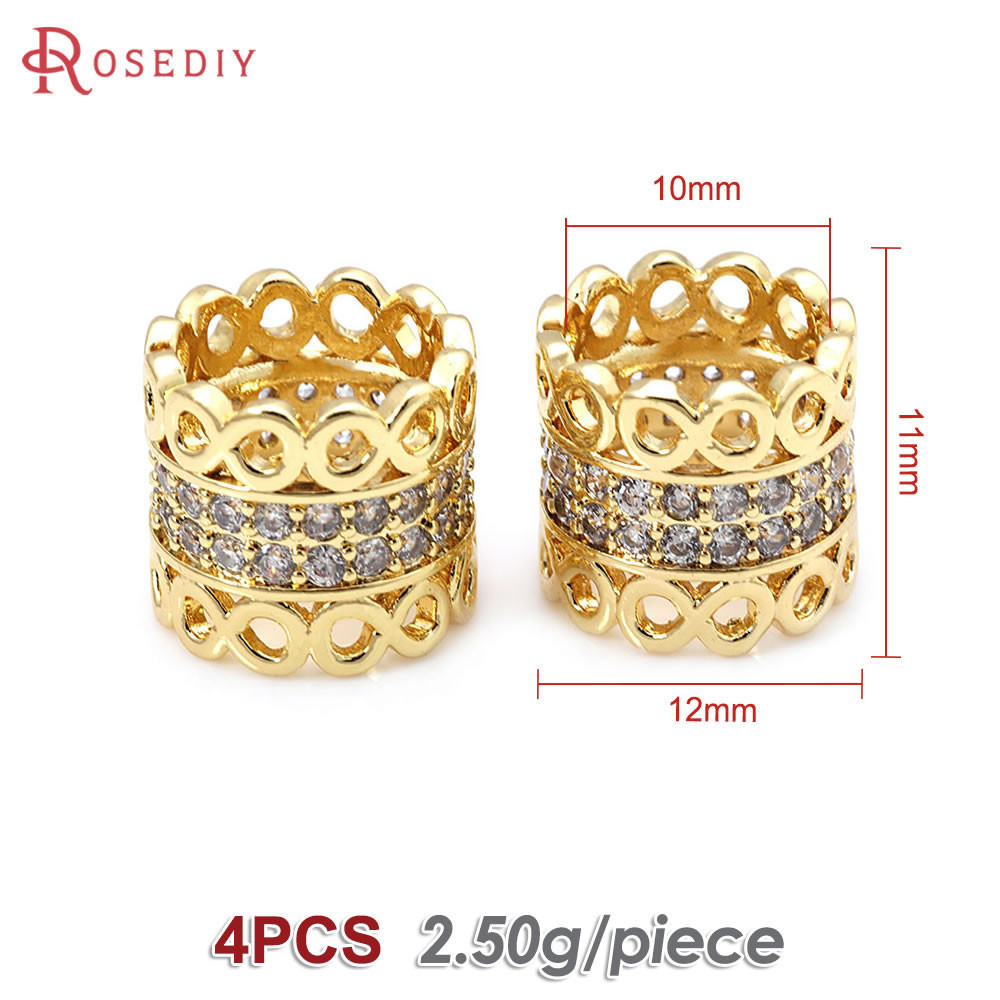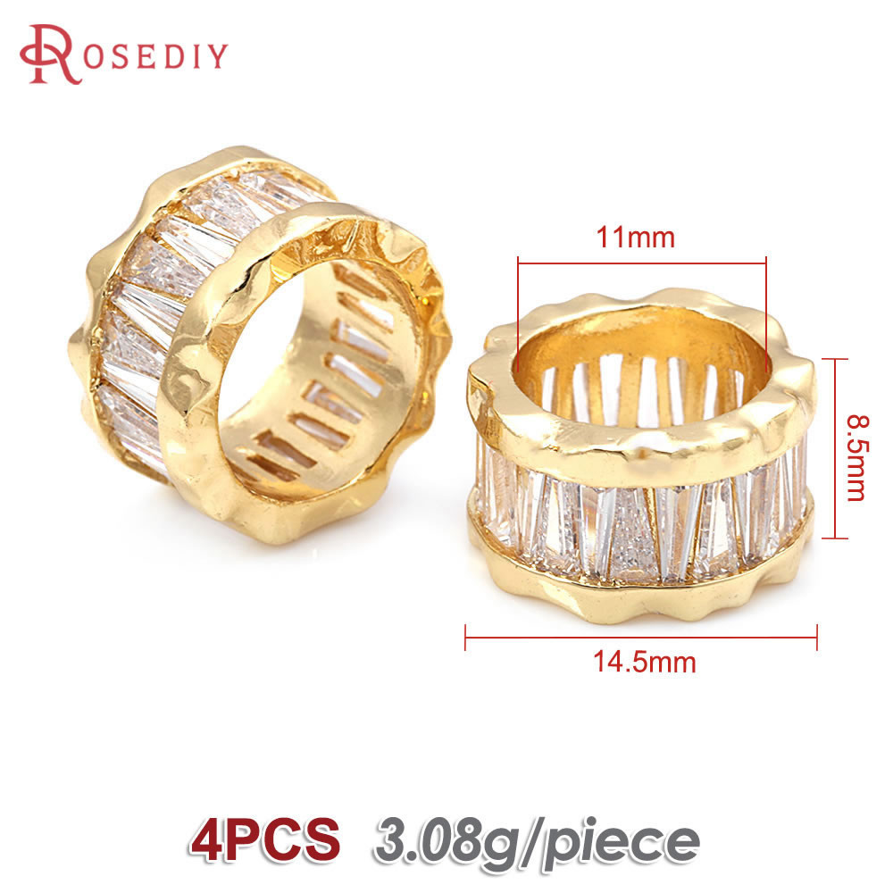 4PCS 18K Gold Color Brass and Zircon Large Hole Beads Cylinder Spacer Beads Bracelets Beads High Quality Diy Jewelry Accessories