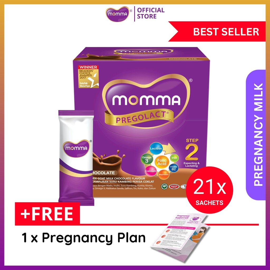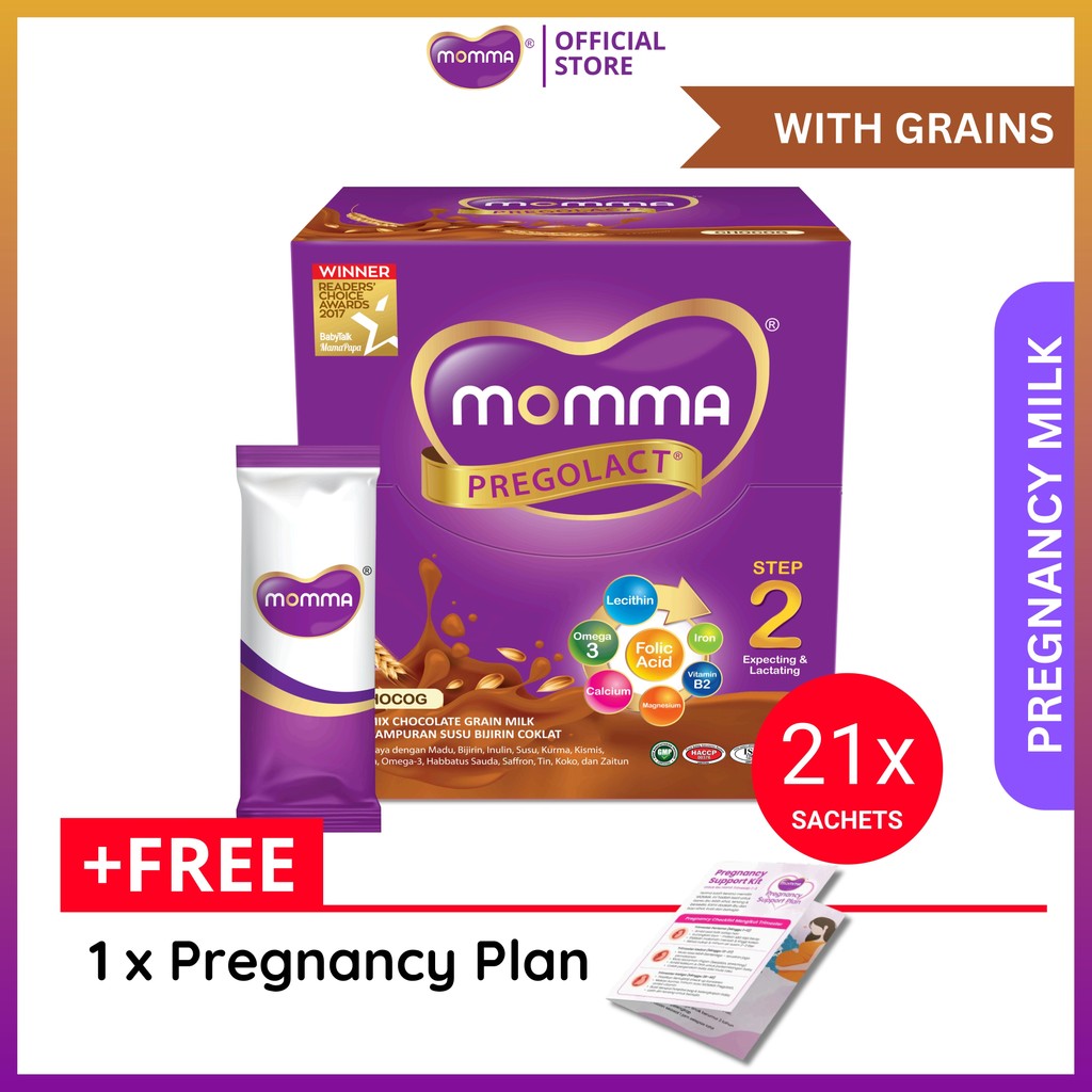 Susu Ibu Mengandung Naikkan Hb & Ikhtiar Hamil MOMMA® Pregolact® - 21 Sachets (1 Unit) Supplement Tanpa Gula Bebas GDM