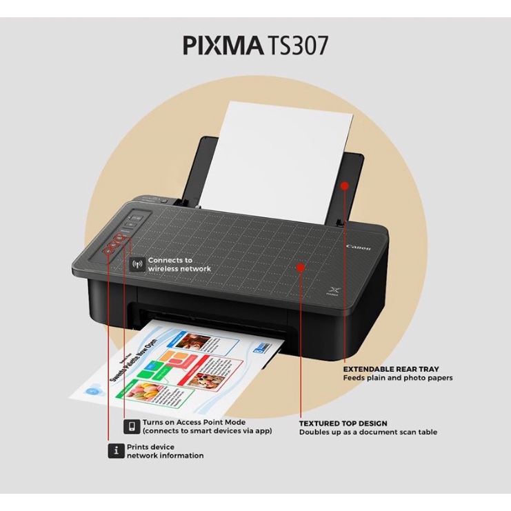 CANON PIXMA TS307 SMARTPHONE COPY WiFi SINGLE-FUNCTION PRINTER Support AirPrint (FINDC)