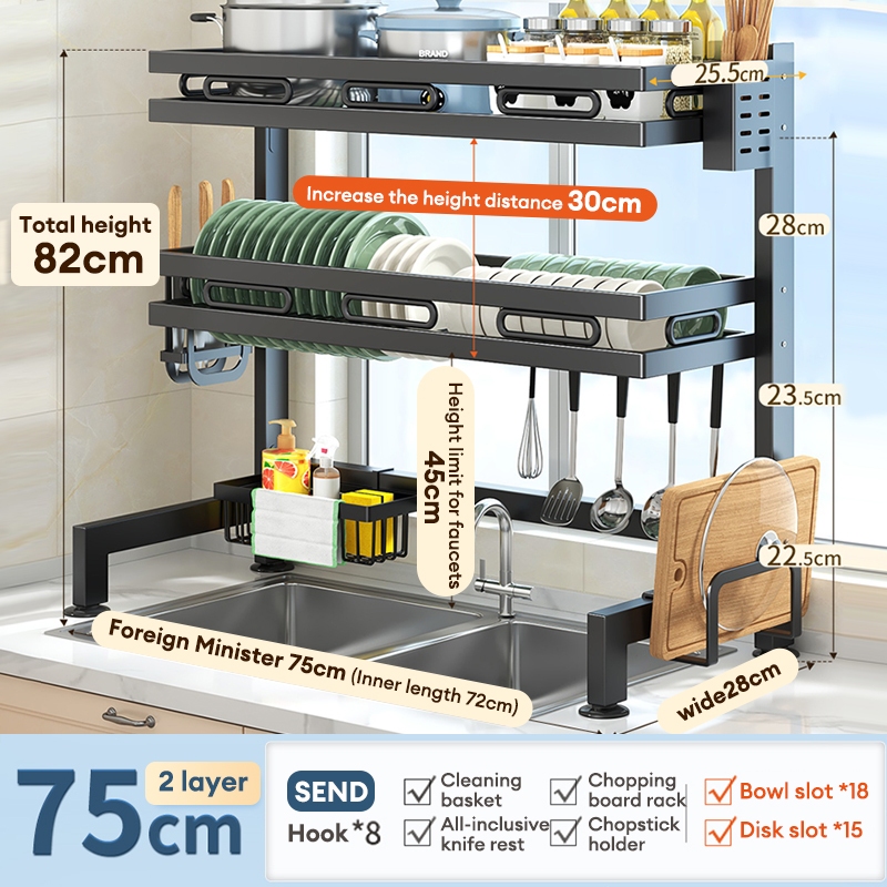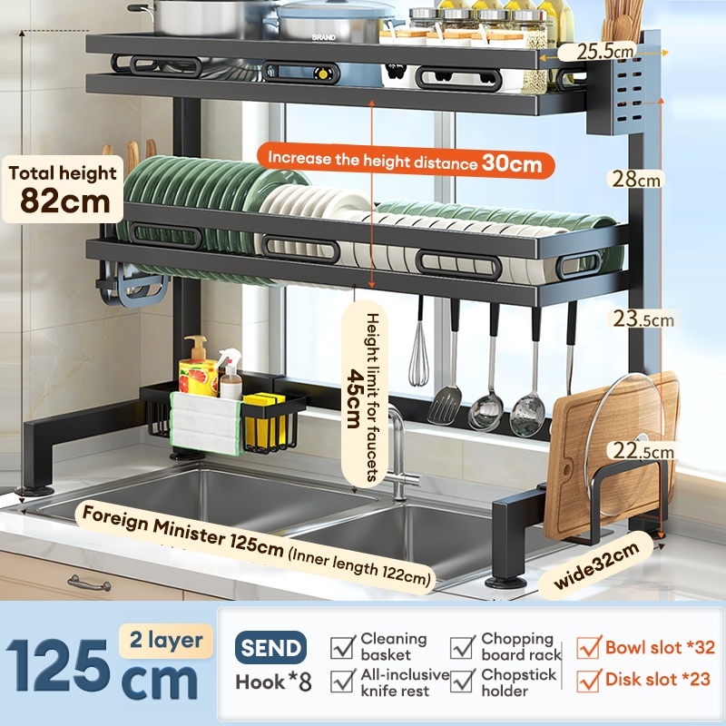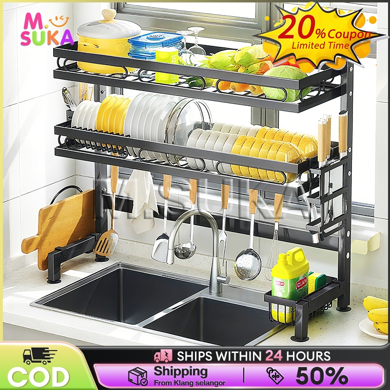 Kitchen Dish Drainer Rack Stainless Steel Drain Rack Sink Organizer Rak Pinggan Mangkuk 碗碟架