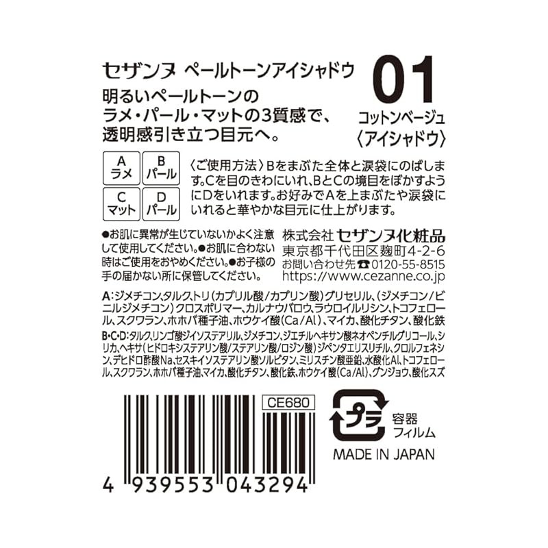 Cezanne Pale Tone Eyeshadow 01 Cotton Beige: Pale color beige eyeshadow