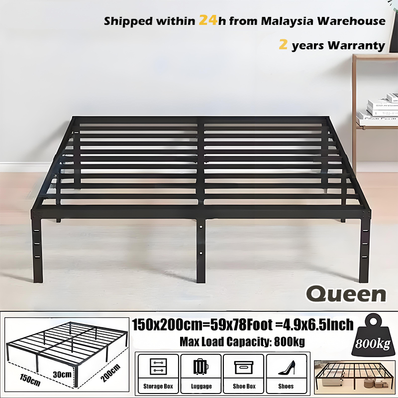 ⚡【2-Day Delivery Ready】 Stock Solid Wood Bed Base Frame Queen Size Without Headboard Sturdy Katil Kayu Dewasa 床箱 床架