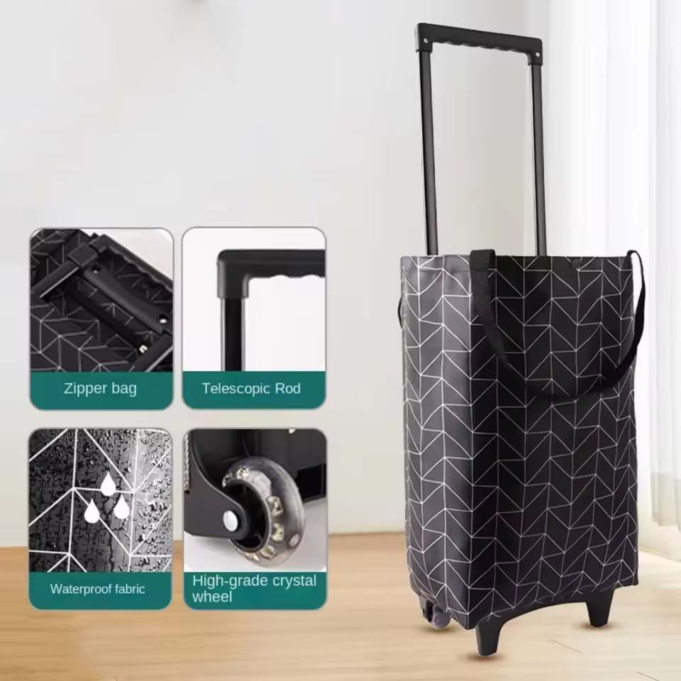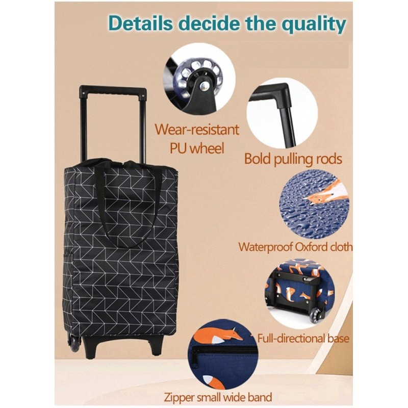 Foldable Shopping Trolley Bag Capacity Lightweight Portable Cart with Wheel for Market Grocery Beg