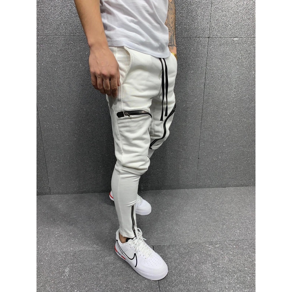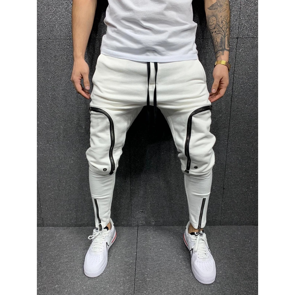 High Quality Sport Fitness Pants Men's Elastic Waist Oblique Zipper Pocket Design Joggers
