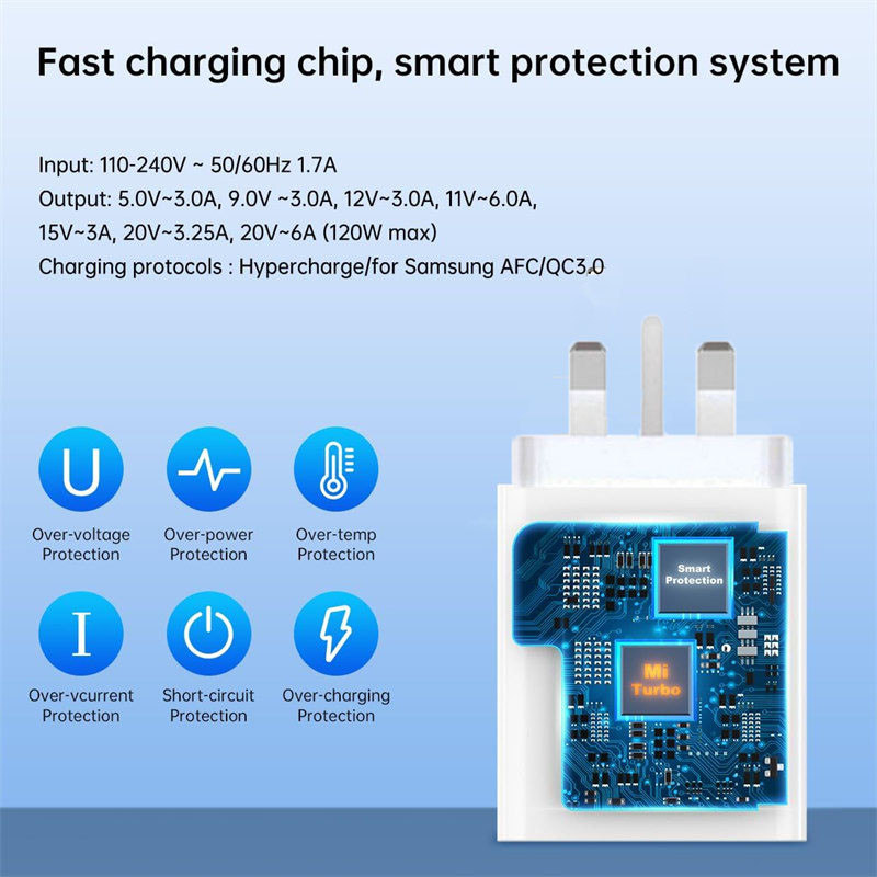 120w Fast Charger 6A QC5.0 Fast Charging Adapter With Cable For Ip Samsung Huawei Oppo Vivo Xiaomi Realme
