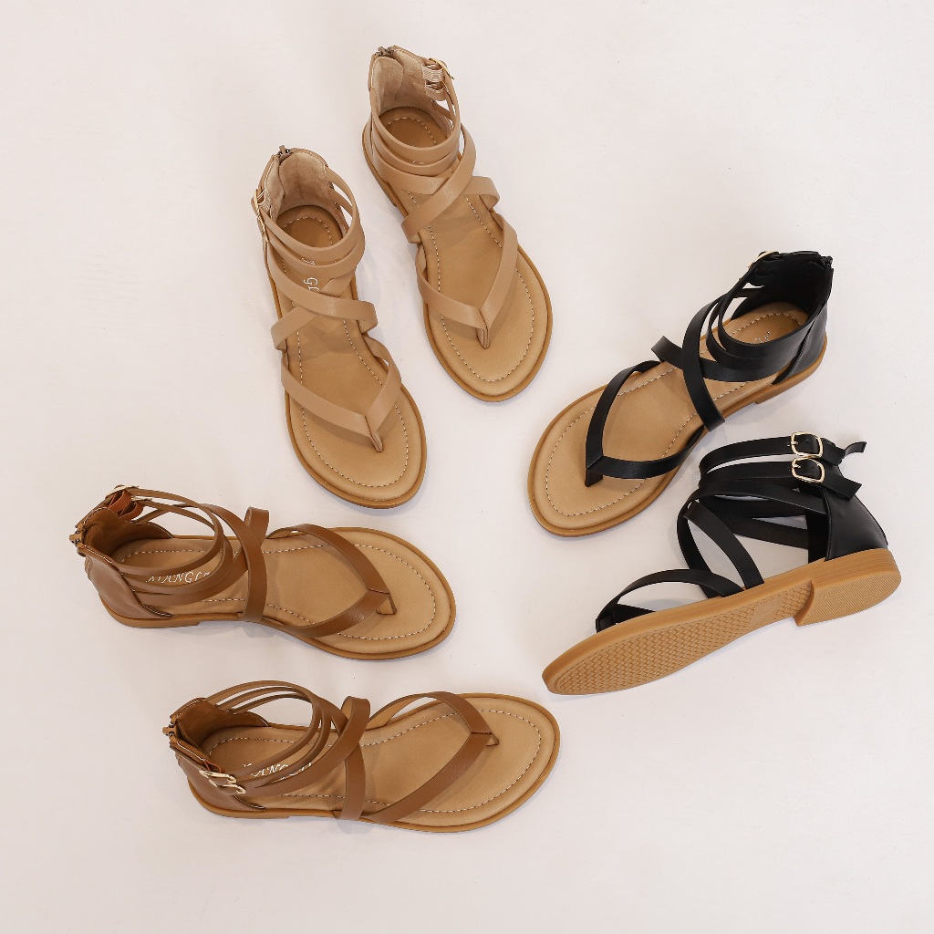 Kasut Sandal Leather Maasai Women's Shoes Dinner Dress Party Strappy Roman Open Sandwich Low Heel