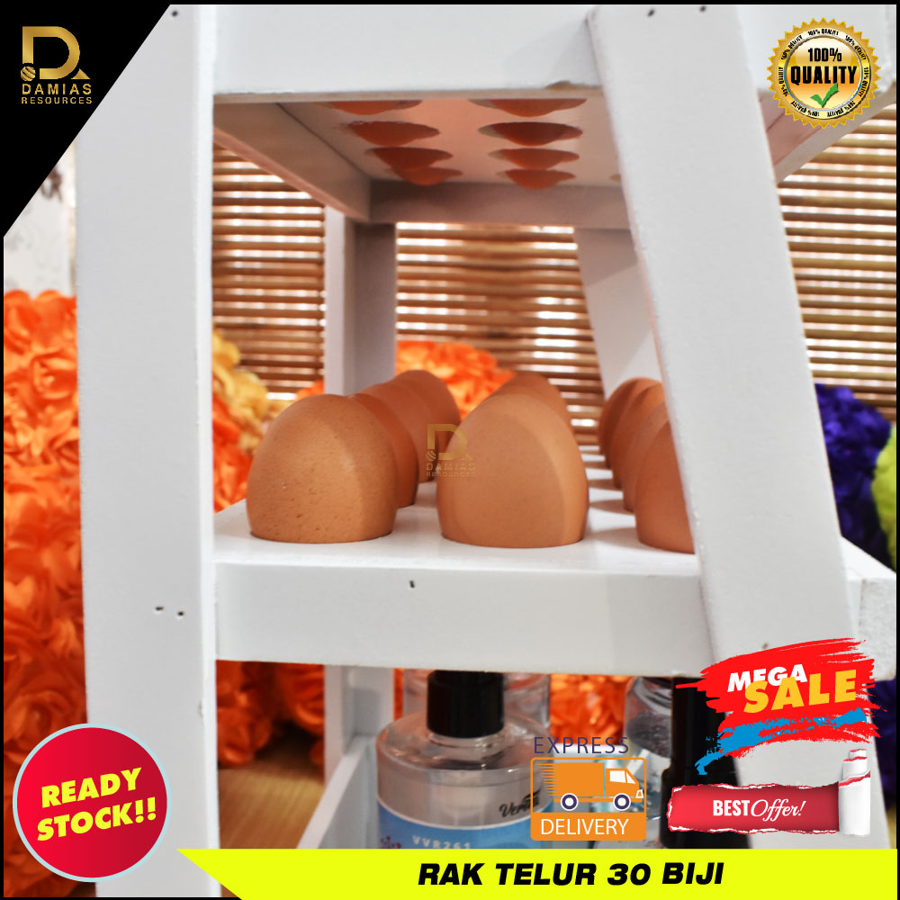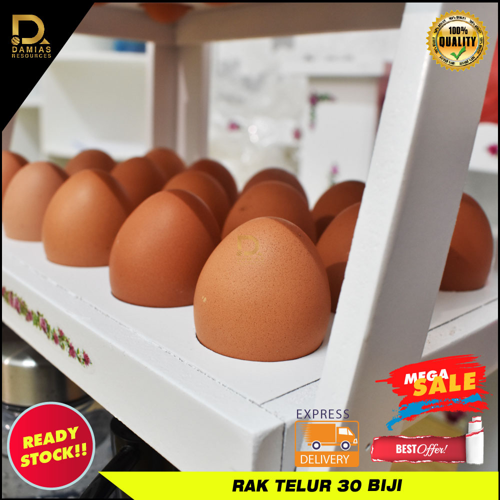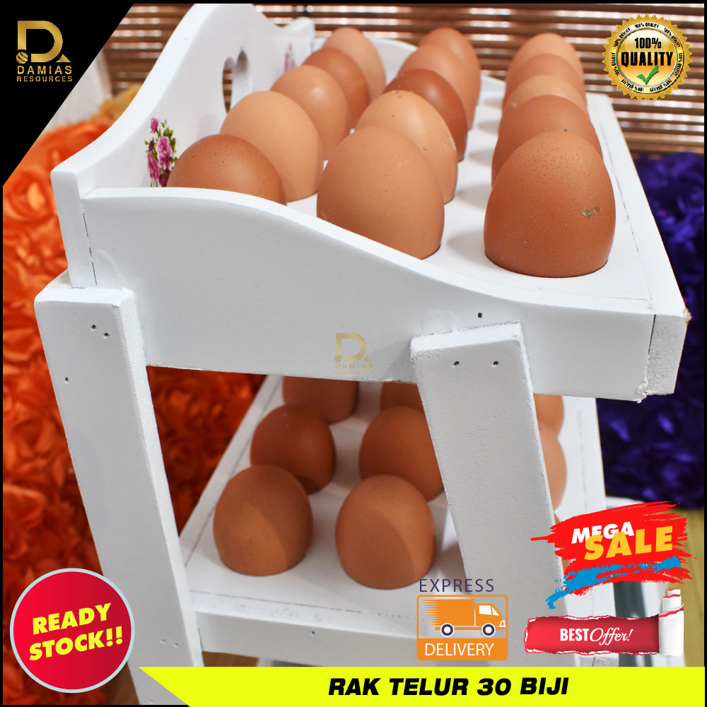Perabut Hiasan (30 Biji Telur) Hiasan Dapur Rak Telur Egg D'laila Bunga Kayu Tidak Mudah Patah Vantage White Exclusive