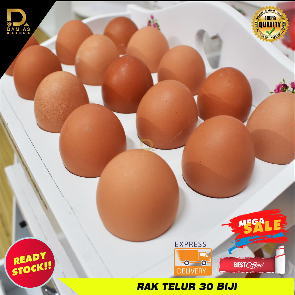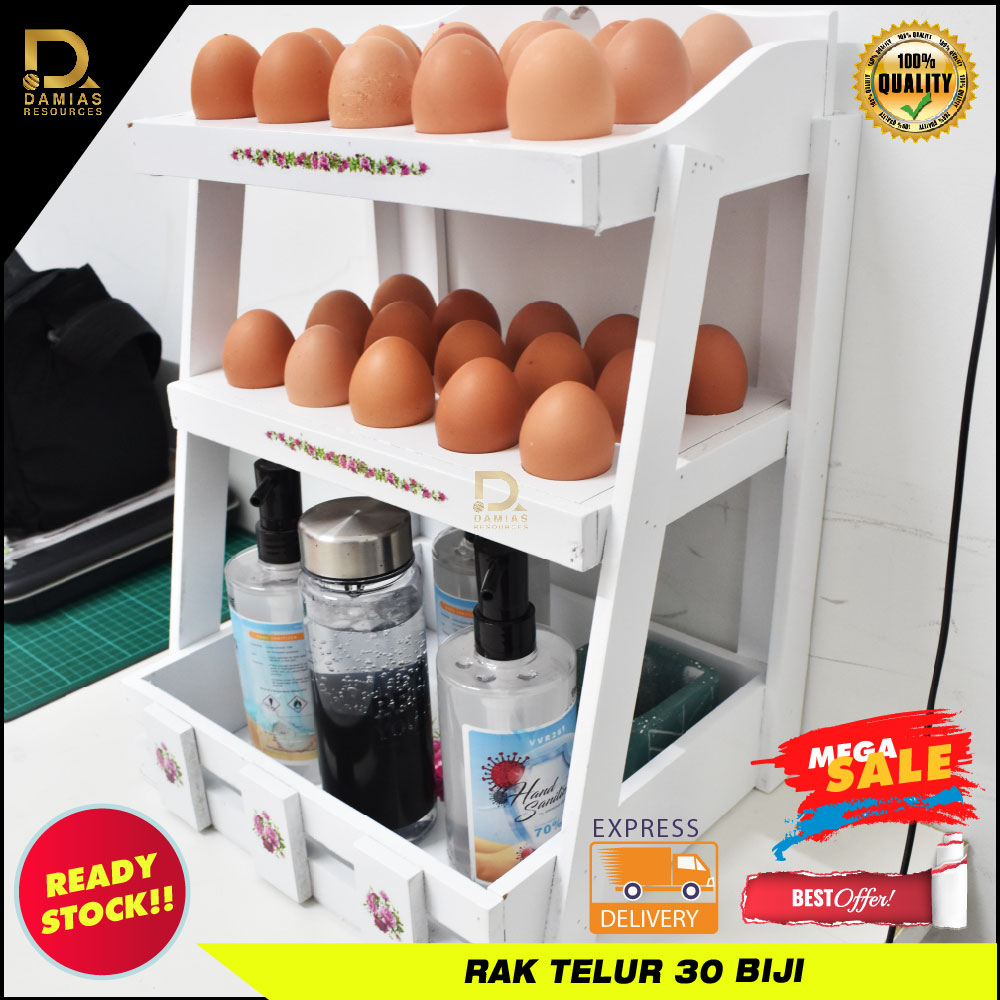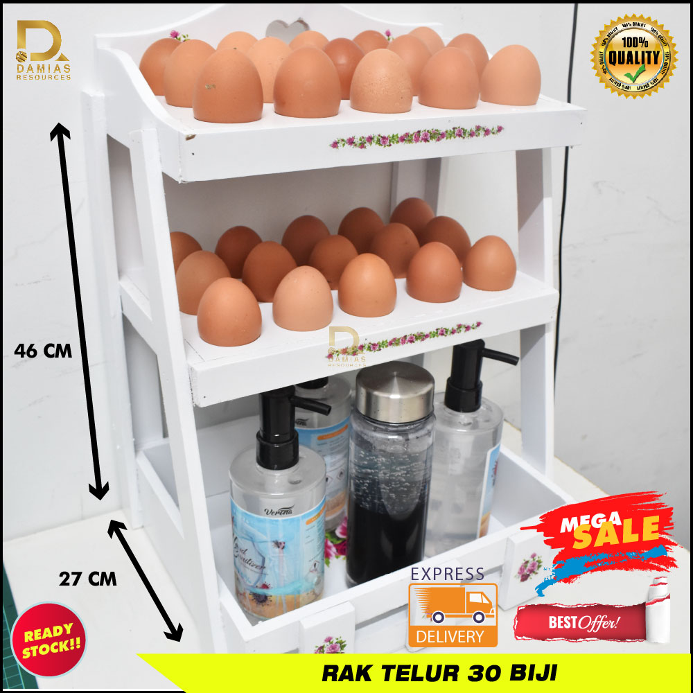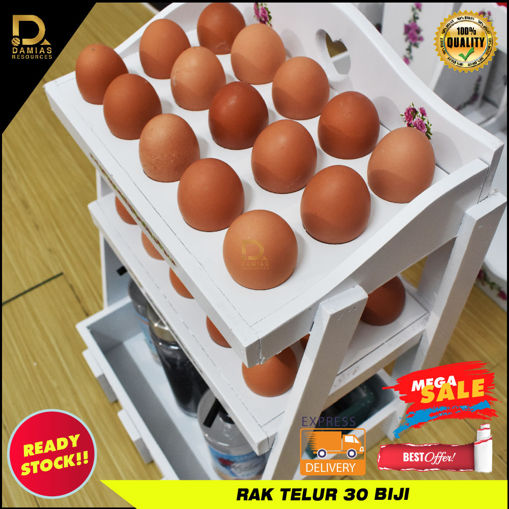 Perabut Hiasan (30 Biji Telur) Hiasan Dapur Rak Telur Egg D'laila Bunga Kayu Tidak Mudah Patah Vantage White Exclusive