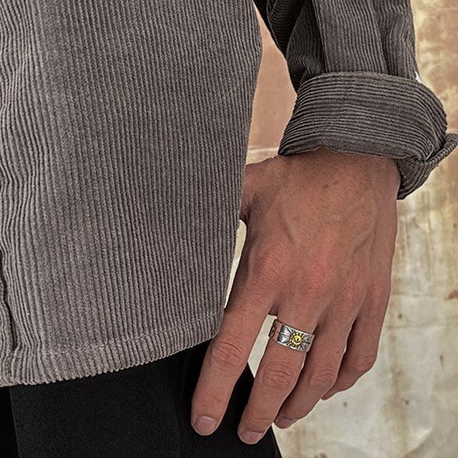 艺尚泰银潮男指男环高桥镶铜飞鹰射线图腾印记开口男女款简约戒指Yishangtai Yinchao Male Finger Male Ring Takahashi Bronze Flying Eagle20260228
