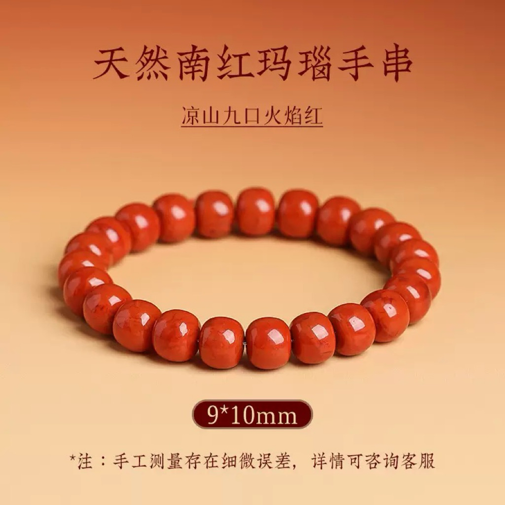 天然川料南红火焰纹手串 无荧光无烤色 |最强补火属性 本命年 化太岁 Natural Southern Red Agate "Flame Pattern" Bracelet.