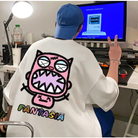 T-shirt Lelaki Cotton 100% Corak Binatang Kecil Pink - Lembut, Kasual, Potongan Lega, Leher Bulat