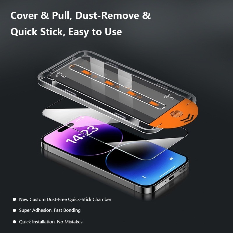 QUICK installation Full Dust Free Screen Protector Clear Privacy for iPhone 17 16 15 14 13 pro max plus Tempered Glass