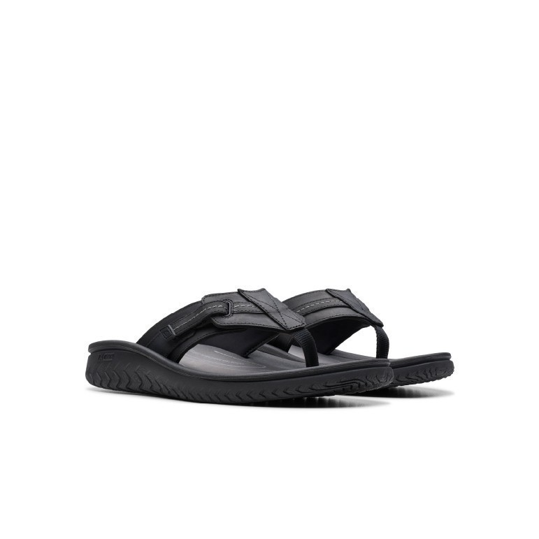 Clarks Mens Wesley Sun Flat Sandals - Black Leather Kasut Lelaki