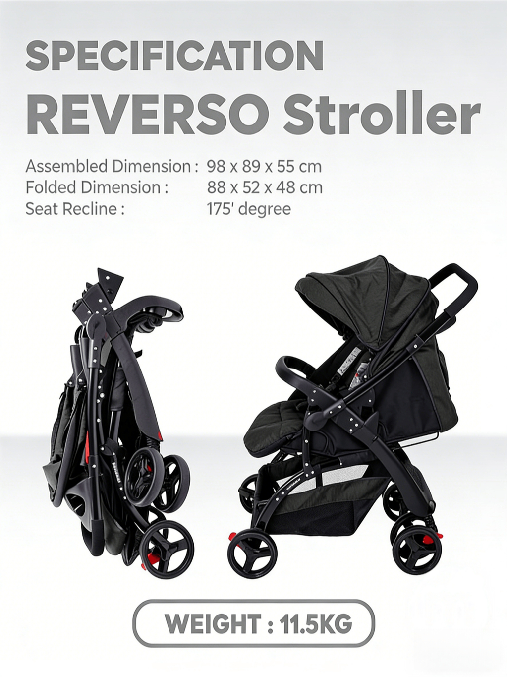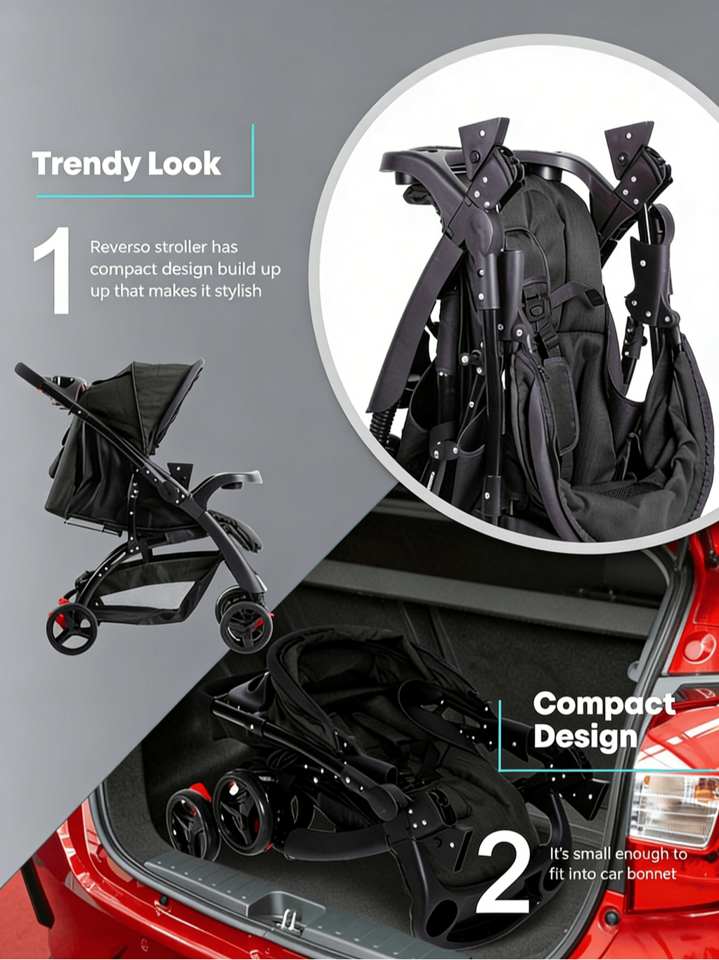 Baby Stroller 2 Way With Baby Car Seat Foldable Stroller 2in1 One-Hand Fold&Parent-Facing Lie - Flat