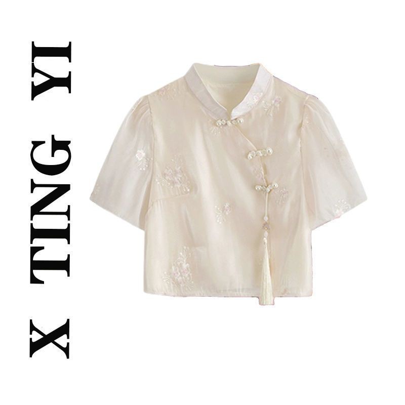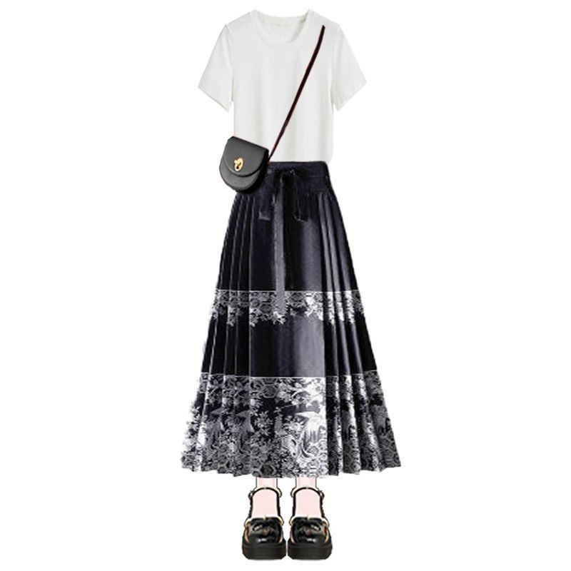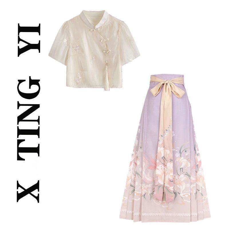Chinese Style Two-Piece Set Buttoned Top Horse Face Skirt中国风套装女2025新中式改良高级盘扣短袖上衣马面裙两件套