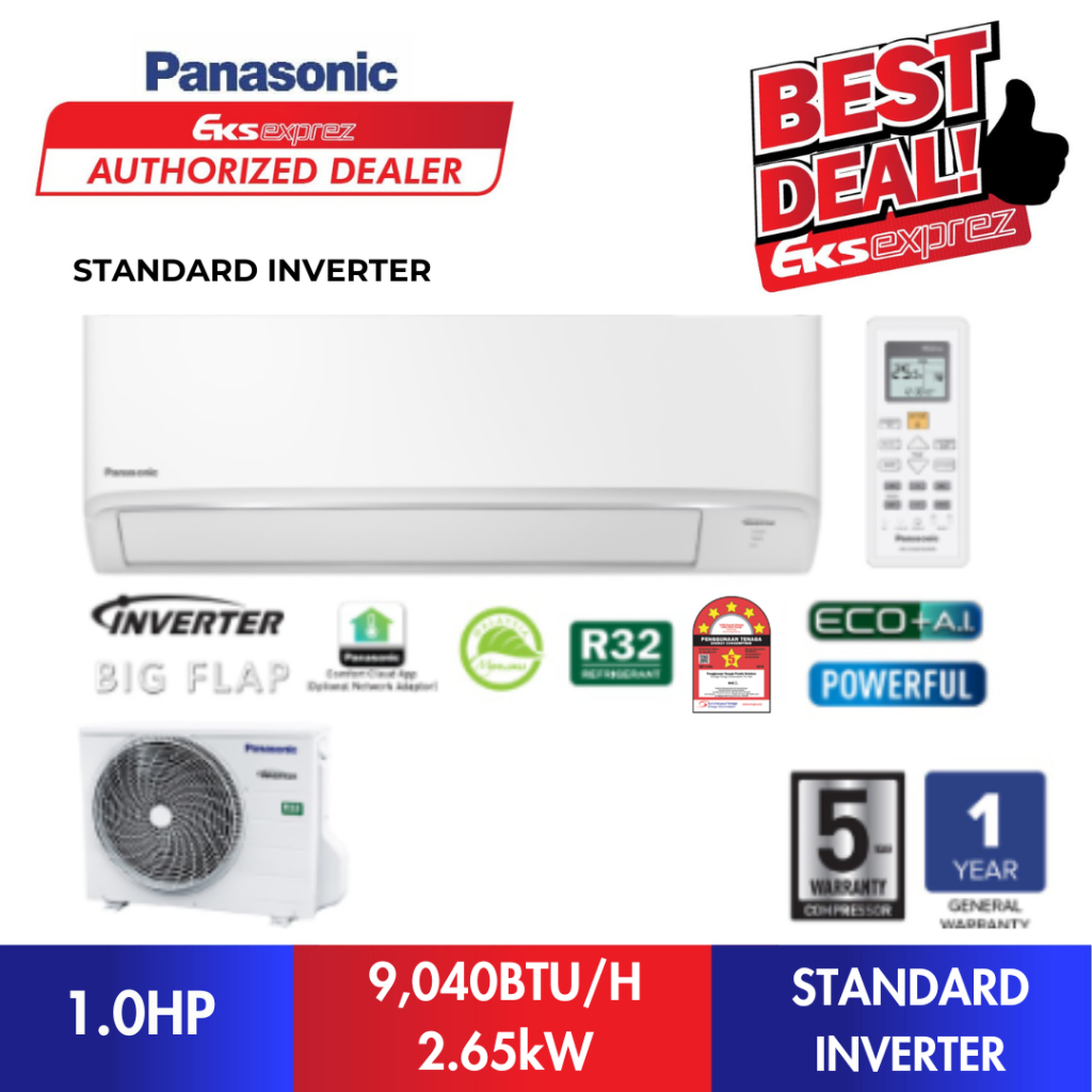 [5 Star Series] Penghawa Dingin Panasonic Standard Inverter R32 CS-PU9AKH-1 / CS-PU12AKH-1 / CS-PU18AKH-1 / CS-PU24AKH