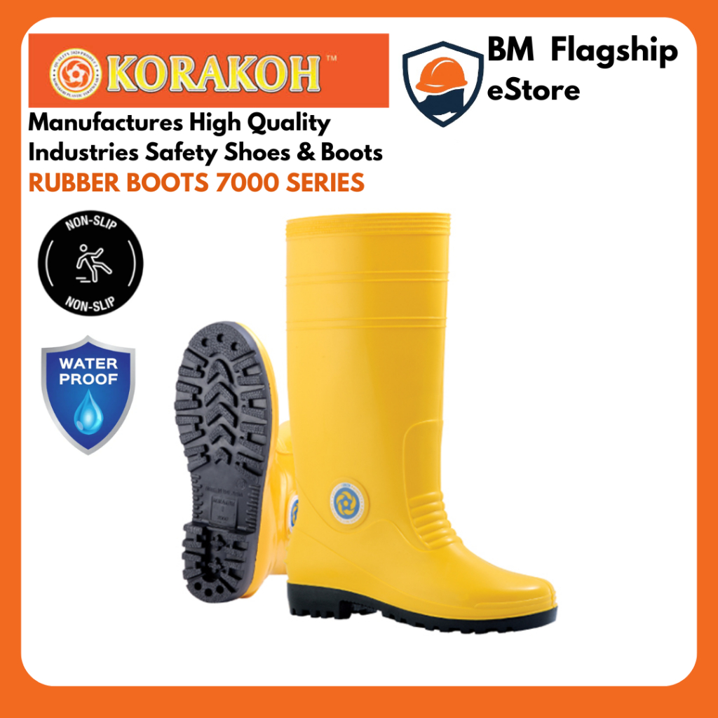 KORAKOH 7000 Yellow Safety Boots Waterproof Rubber Shoes Safety Boot Kebun Getah Hujan Kasut 黄色水鞋