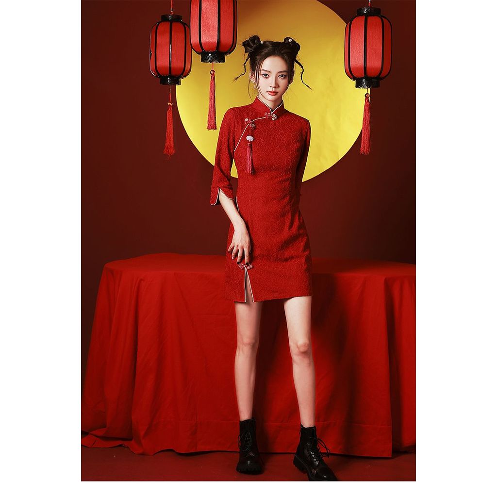 Red Lace Cheongsam 2026 New Girl Improved Young Spring Toasting Dress Bride Slim Short#bei12.12