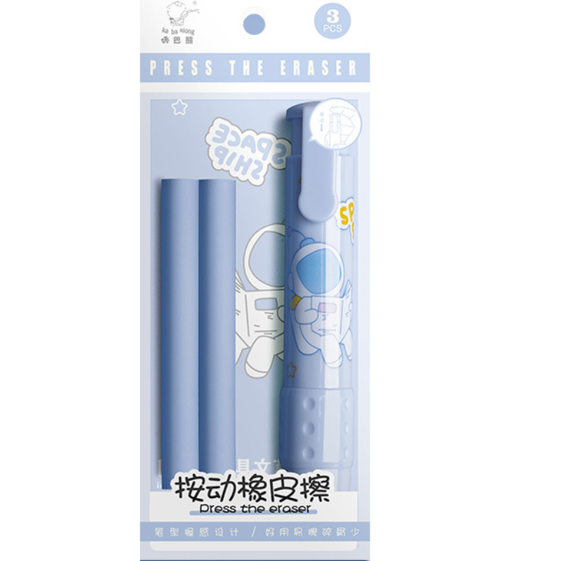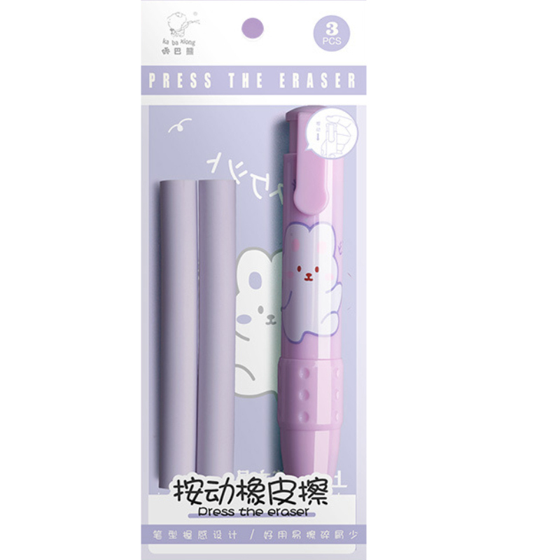 Pemadam Bentuk Pen Kartun Comel Berserta Set Isian Semula Cute Cartoon Pen Shape Retractable Erasers And Refill Set