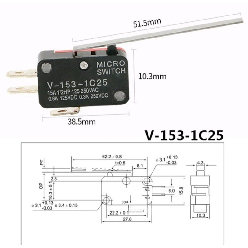 *READY STOCK* POWERLETRIK -15A MICRO LIMIT SWITCH (V-15 → V156 1C25) / TOUCH SWITCH FOR RICE COOKER / MICROWAVE / OVEN