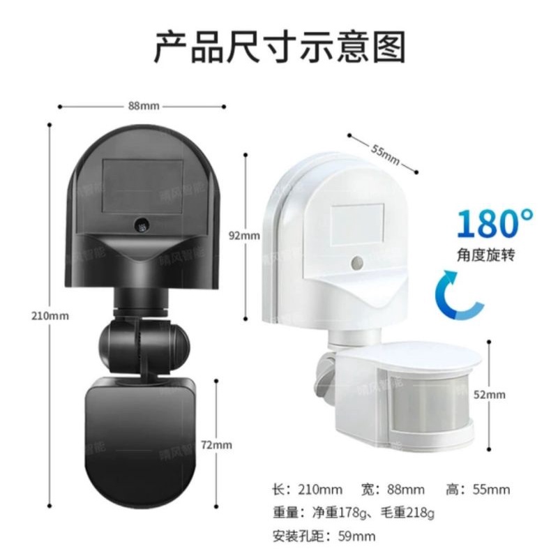 180° AUTO ON - OFF PIR INFARED MOTION SENSOR BLACK OR WHITE