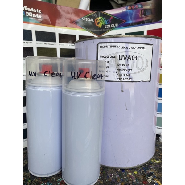 Spray tin Uv clear / clear kurang kilat sesuai untuk spotrim dan casing enjin