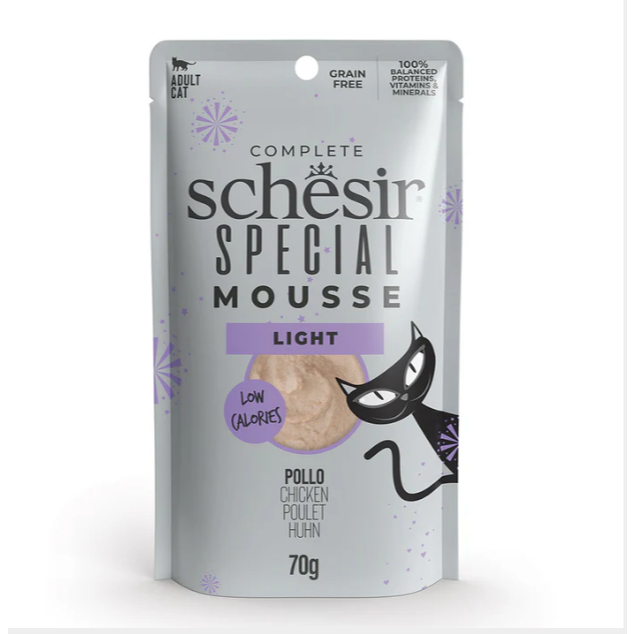 SCHESIR SPECIAL (COMPLETE FOOD) MOUSSE LIGHT CHICKEN 70g -CF-342 12pcs (FOR OVER WEIGHT CAT) - 减重配方 EXP : 30/10/2027