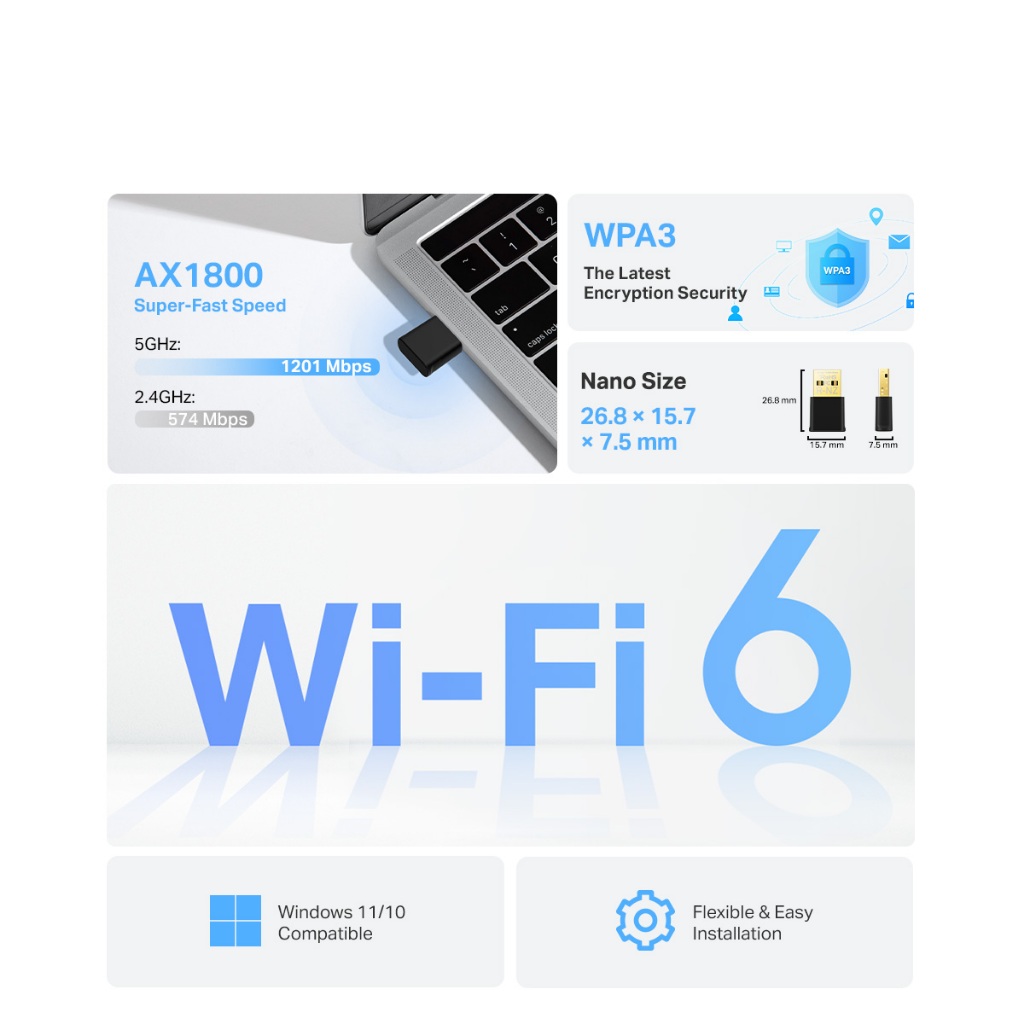 TP-Link Archer TX20U Nano AX1800 Nano permainan Latency rendah wi-fi 6 Dual Band Wireless USB Adapter @ IBN
