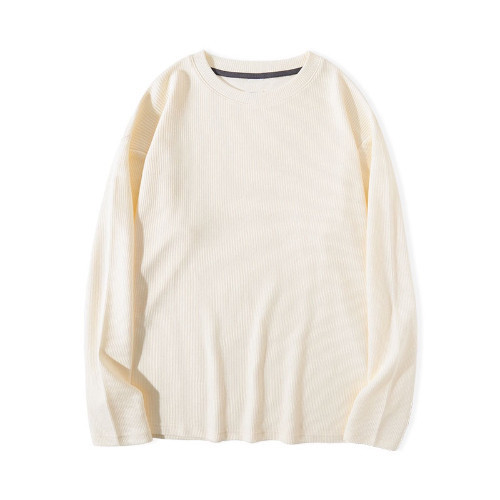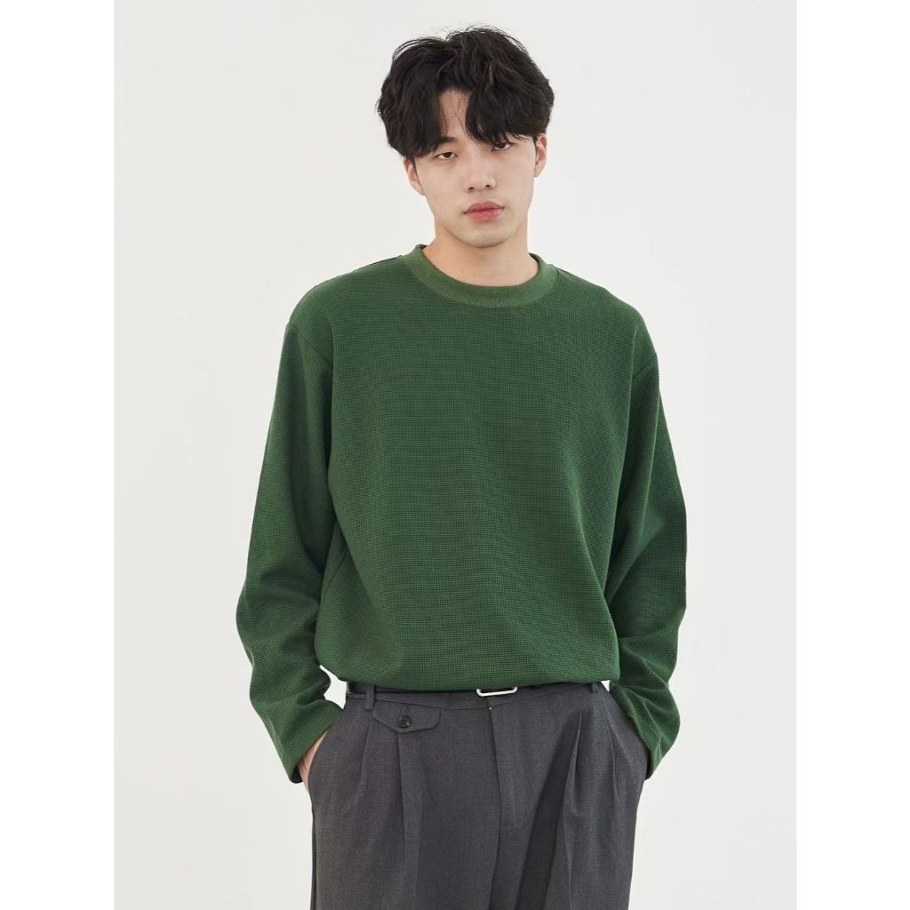 Dari Johor~BeCoolMAN baju kemeja lelaki lengan panjang Waffle Round Neck Casual Tee Microfiber Easy Long Sleeve T Shirt