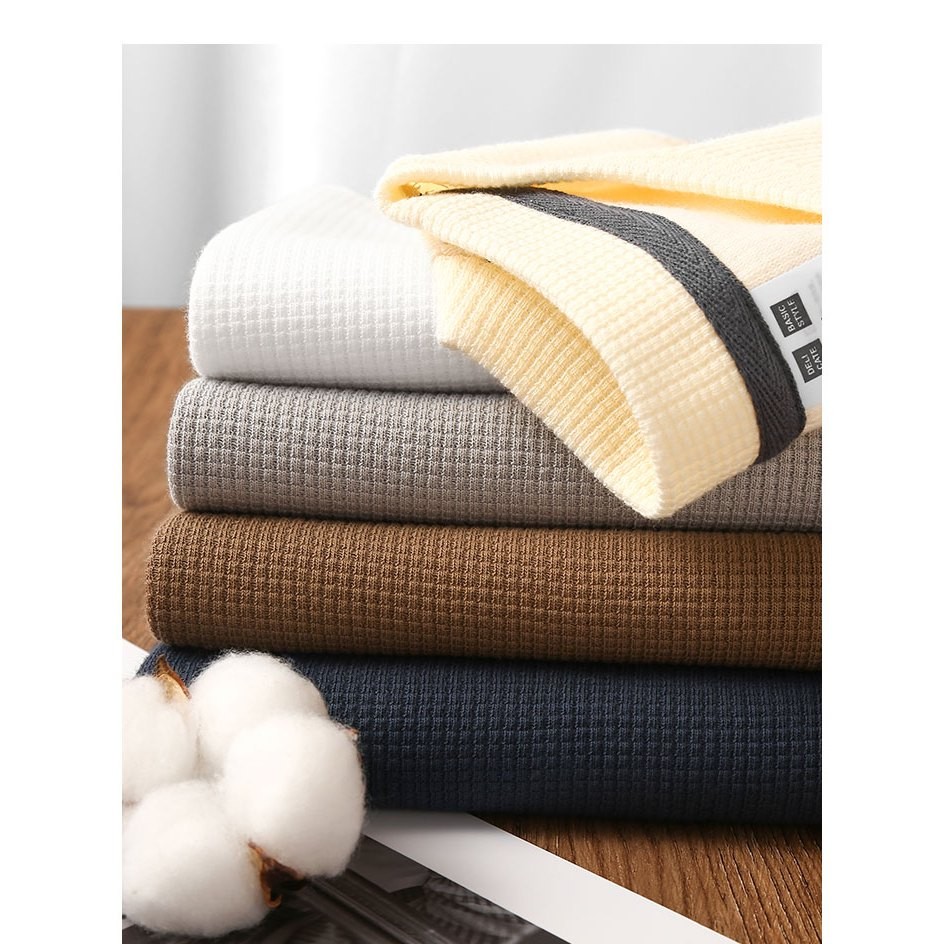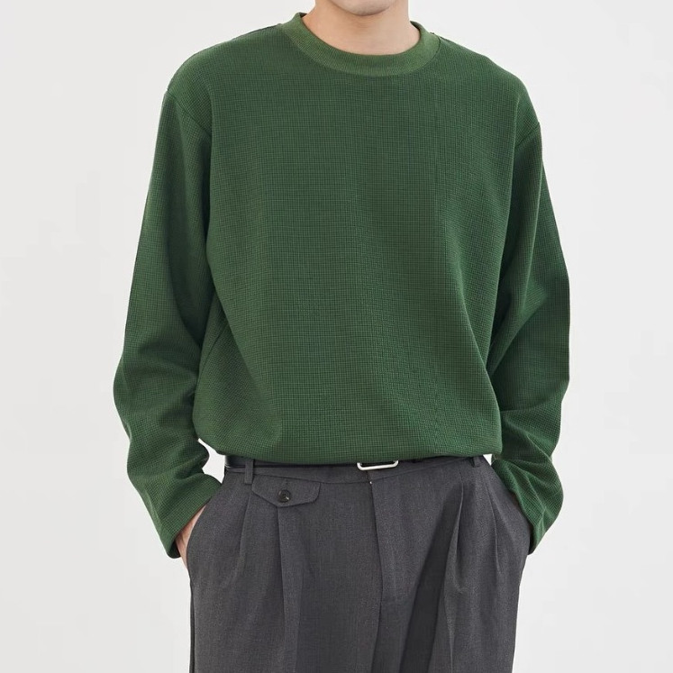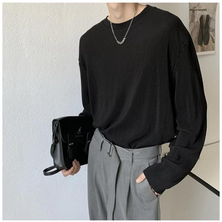 Dari Johor~BeCoolMAN baju lelaki men long sleeve plain tee waffle premium tshirt unisex crew neck korean shirt black