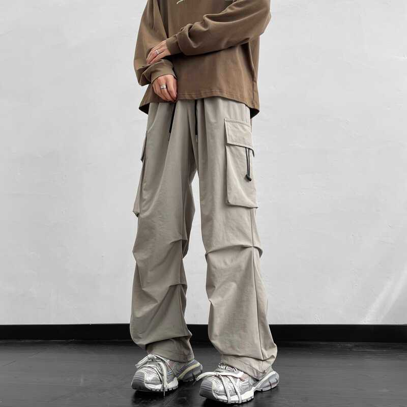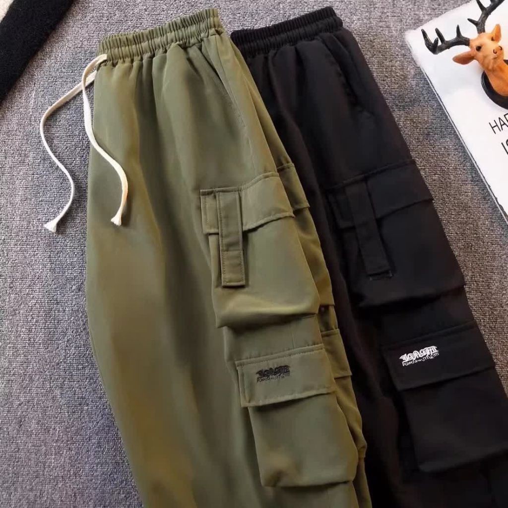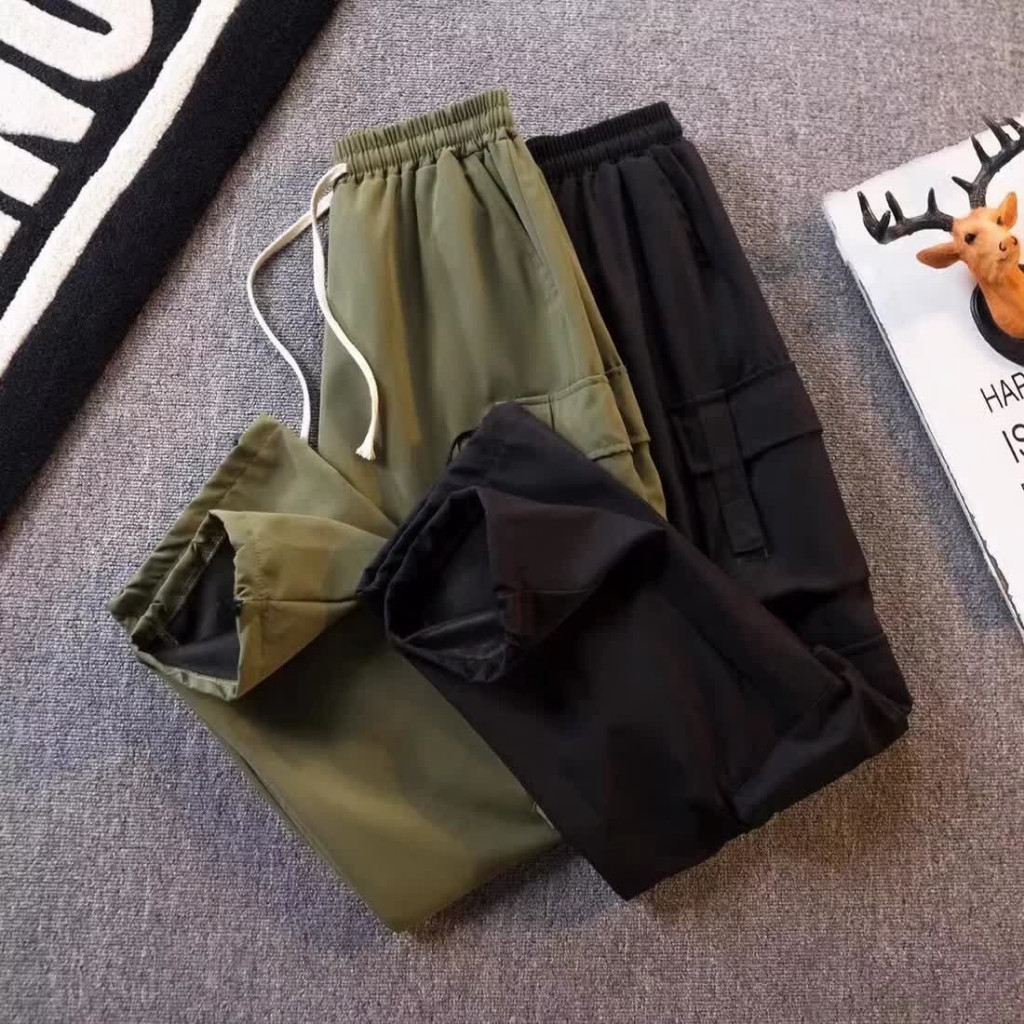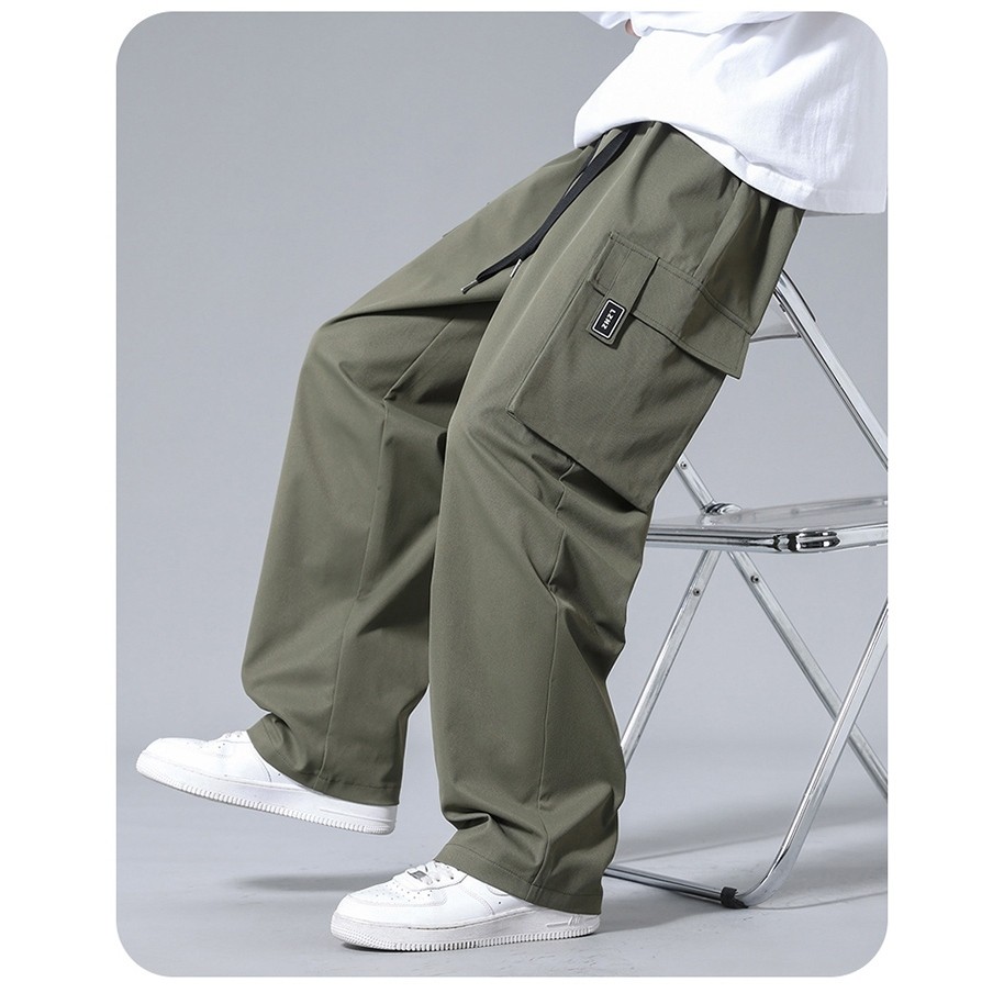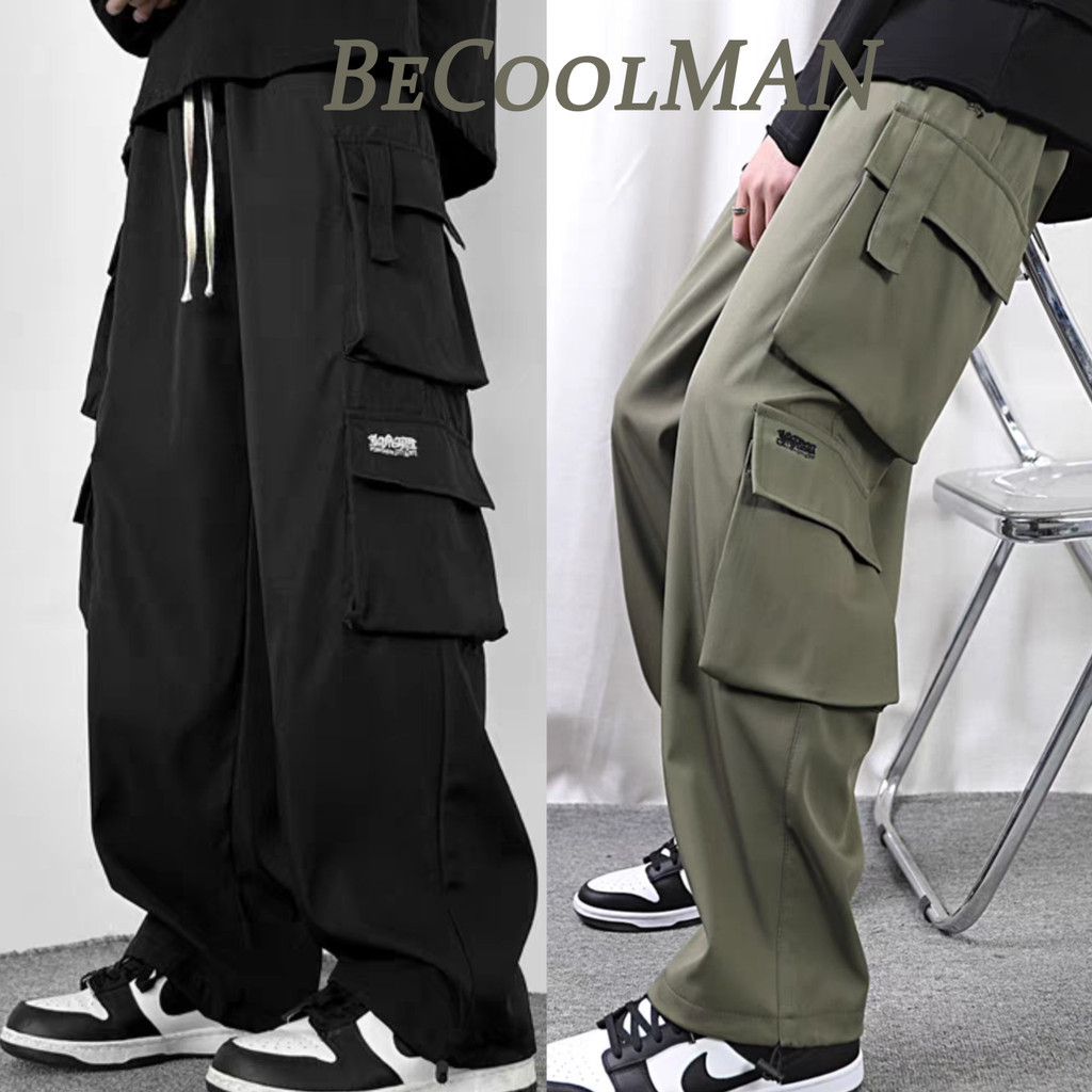 Dari Johor~BeCoolMAN Seluar Baggy Lelaki Men's Sports Casual Pants Loose Overalls Plus Size Multi-pocket Retro