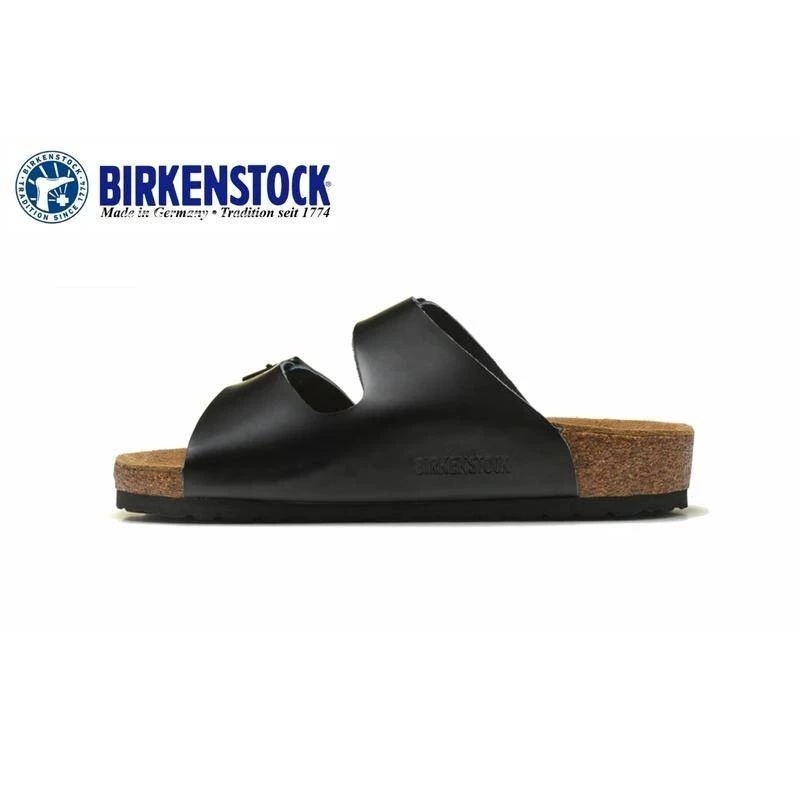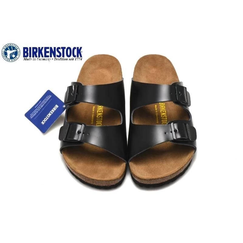 【100% Original】Birkenstock Double Button Sandals, Suitable for Both Men and Women Black Glossy Leather