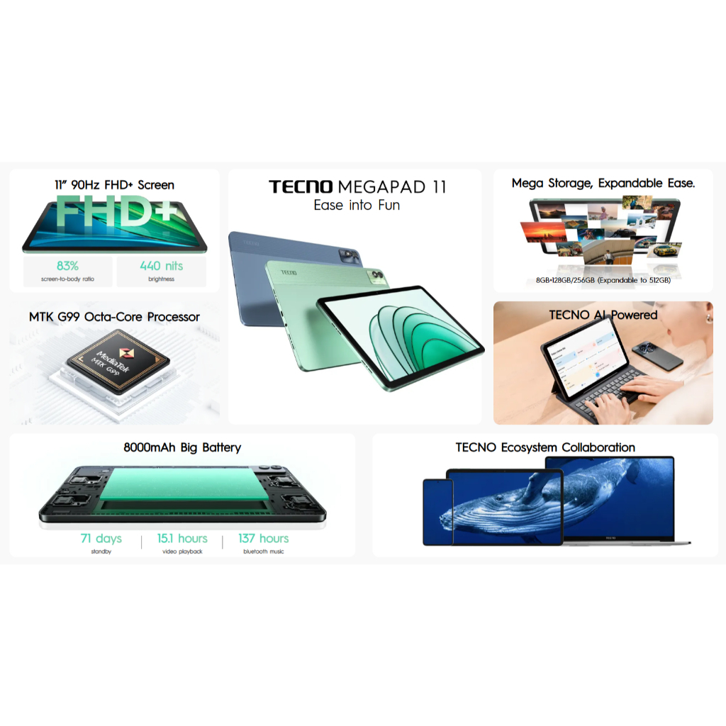 Tecno MegaPad 11 4G (8GB+128GB | 8GB+256GB) Tablet Smartphone | 1 Year TECNO Malaysia Warranty