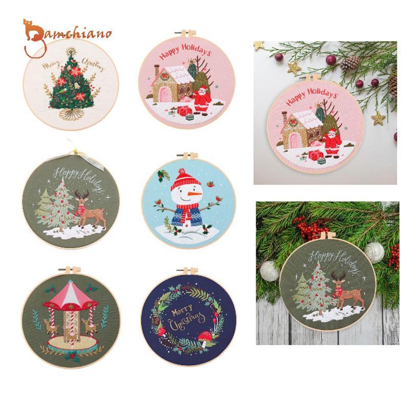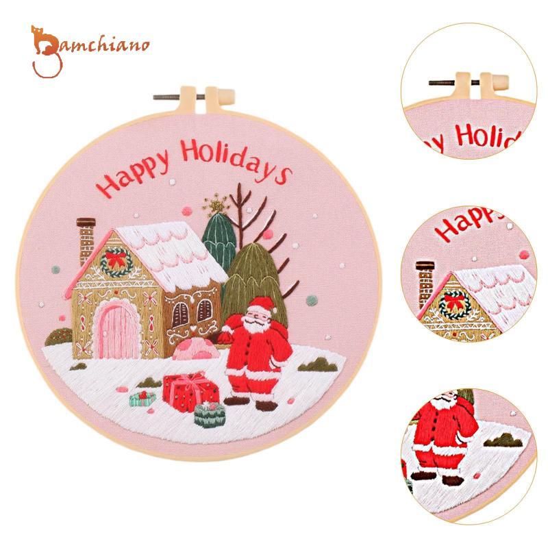 [Gamchiano] Christmas Needlework Kit for Beginners - Craft Set with Embroidery Hoop