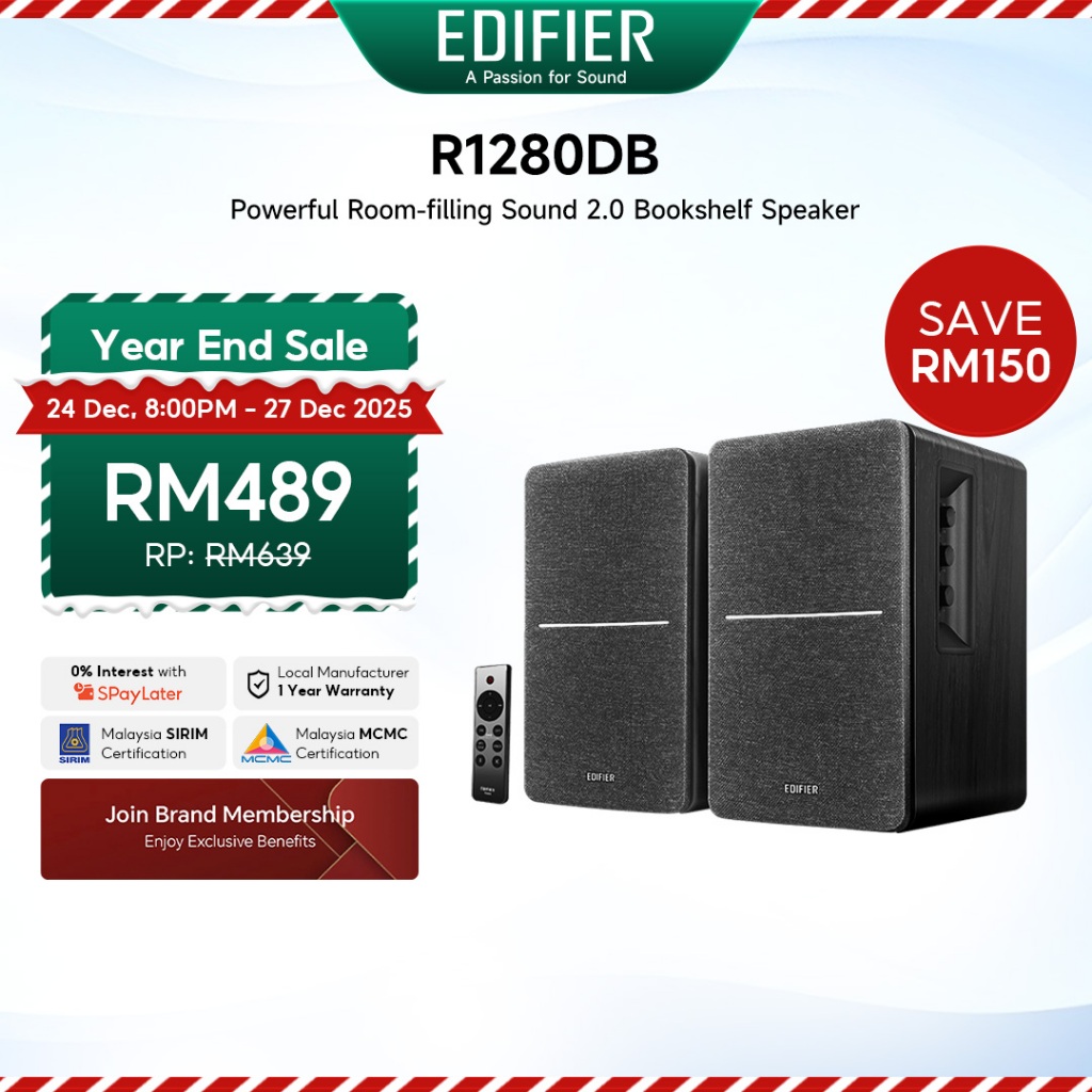 Edifier R1280DB Bluetooth Bookshelf Speaker - Multiple Inputs | Wooden Enclosure | 42W RMS