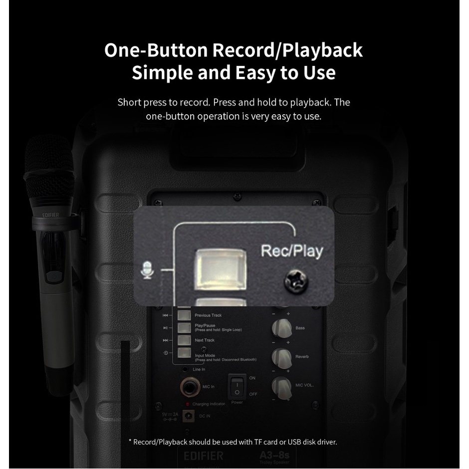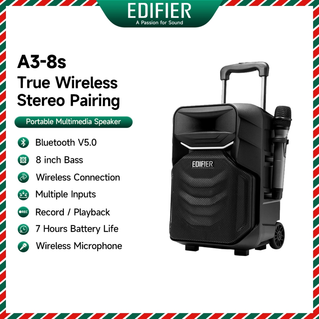 Edifier A3-8S True Wireless Stereo Pairing Trolley Speaker - Record Replay | Build in Battery