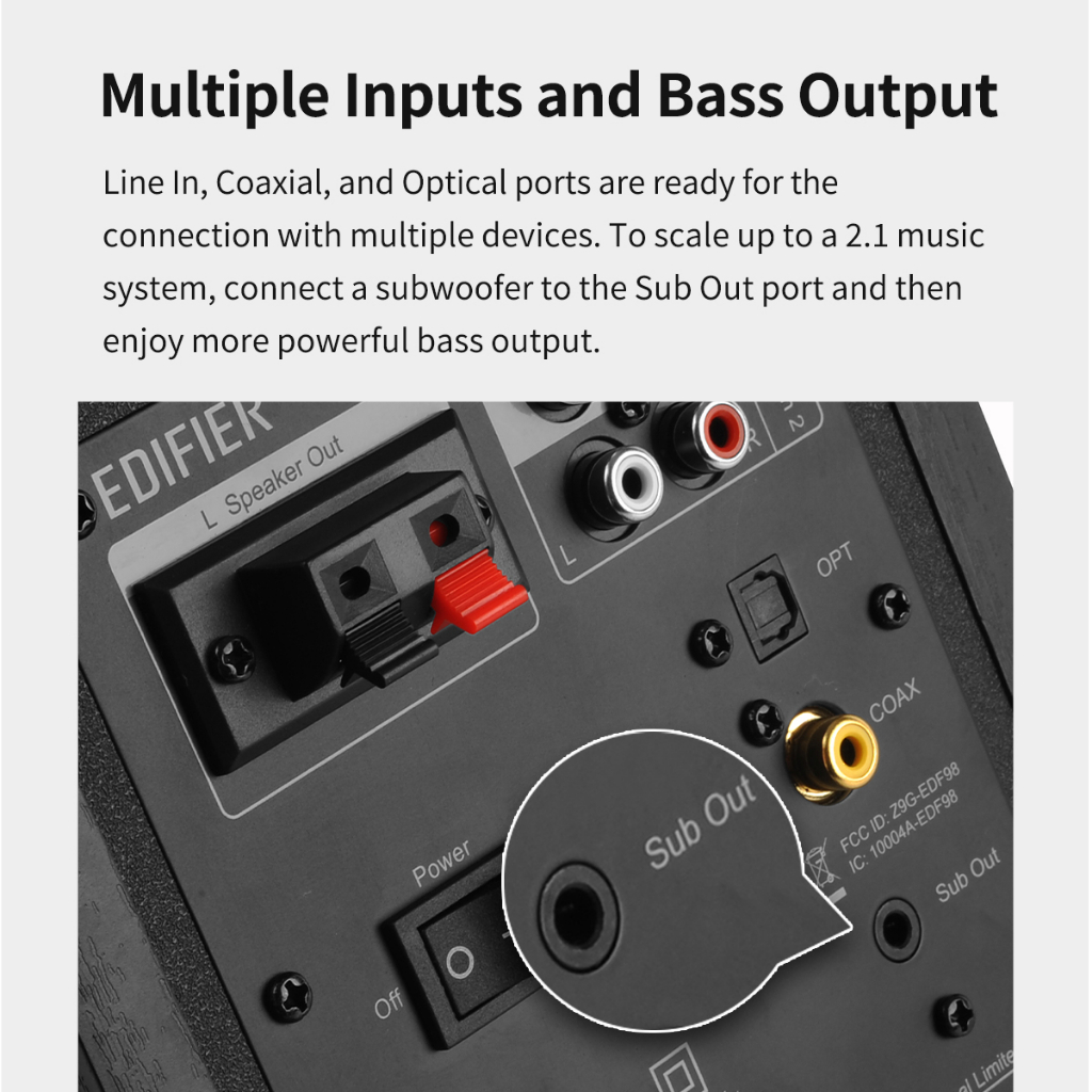 Edifier R1280DBs Bluetooth Bookshelf Speaker - Multiple Inputs | Subwoofer Out Port | 42W RMS