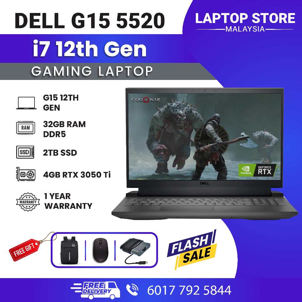 Dell G15 15.6” Gaming Laptop | i7 12th Gen | 32GB DDR5 RAM | 2TB SSD | RTX 3050 4GB Graphics | 2 Years Warranty