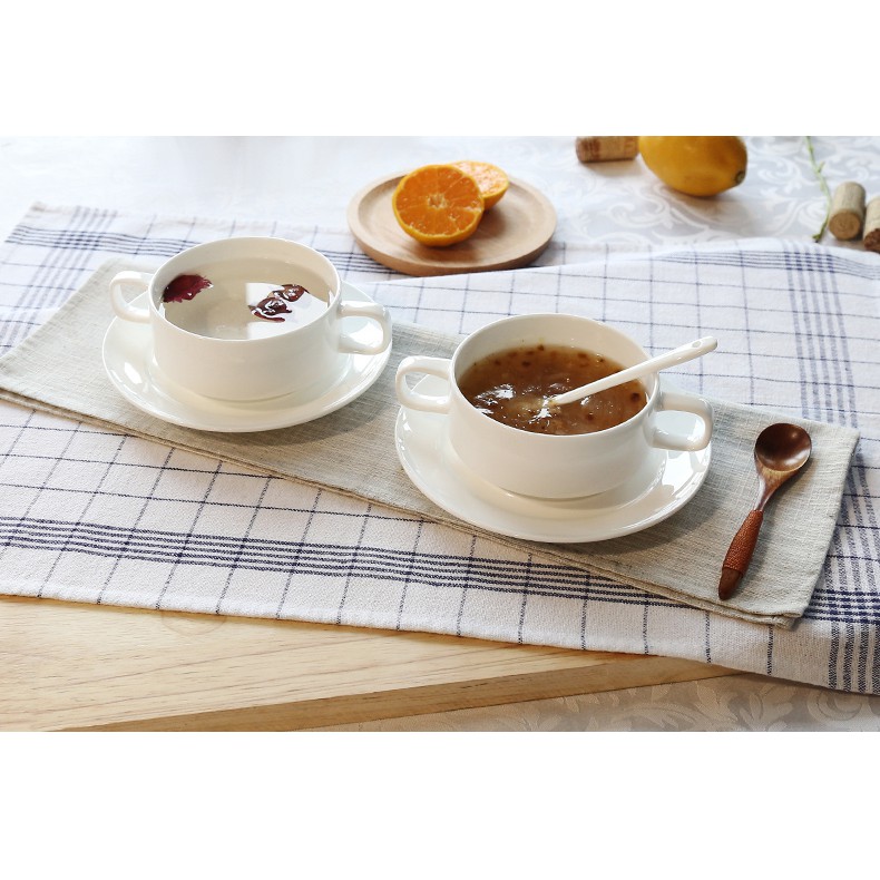 4" Microwaveable Ceramic Soup Bowl With Saucer Mushroom Soup Oat Meal Bowl Mangkuk Sup Seramik Dan Piring 陶瓷蘑菇汤碗糖水甜品碗